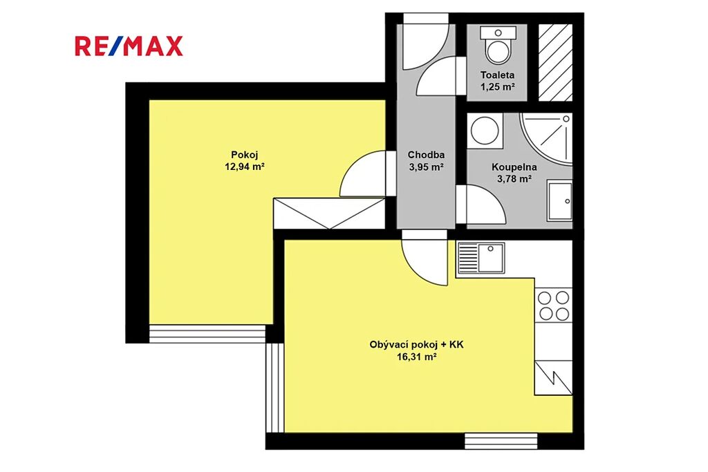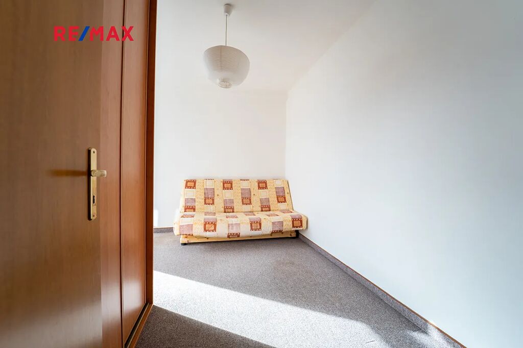 Byt tvoří obývací pokoj s kuchyňským koutem, samostatná ložnice s pracovnou, chodbička, koupelna se sprchovým koutem, pračkou a oddělené WC.