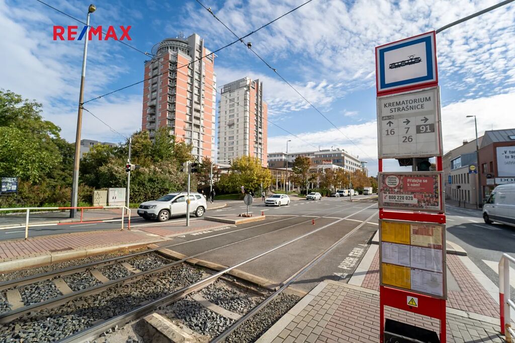 Byt se nachází v lukrativní lokalitě Prahy 10 – Strašnice, pouhých 5 minut od centra města Prahy. V blízkosti jsou tramvajové zastávky, stanice metra trasy A, obchody (supermarket Albert), večerky, restaurace a veškerá občanská vybavenost.