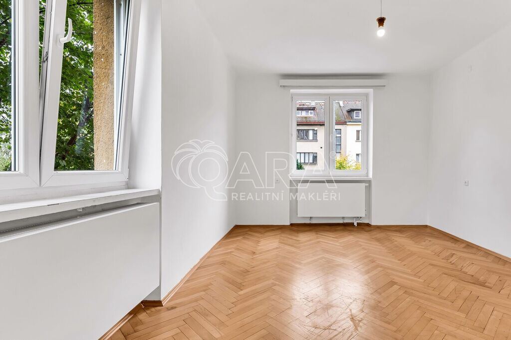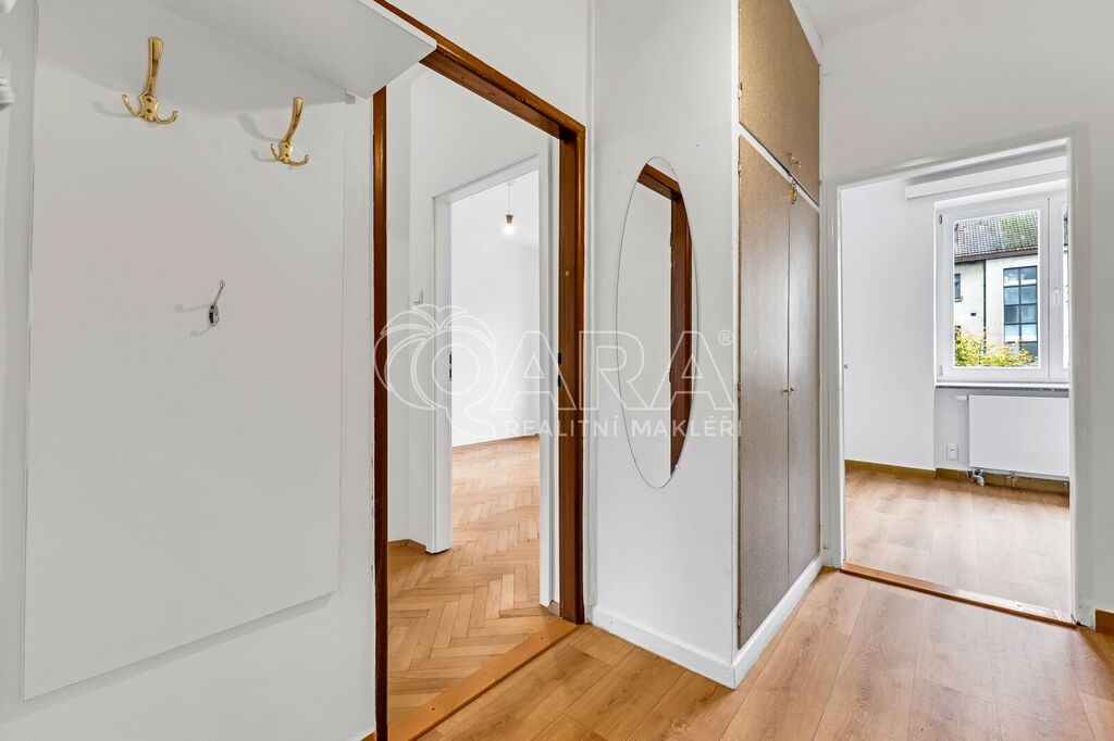 Byt má praktickou komoru a dále vestavěnou skříň v předsíni. Dále budete mít k dispozici ještě dvě sklepní kóje v suterénu domu. Na podlahách v pokojích jsou parkety, v chodbě a kuchyni je nové lino.