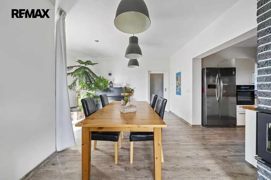 Dům je prostorný a nabízí celkem 215 m2 obytné plochy. Celková výměra pozemku je 749 m2, zastavěná plocha domu je 145 m2.