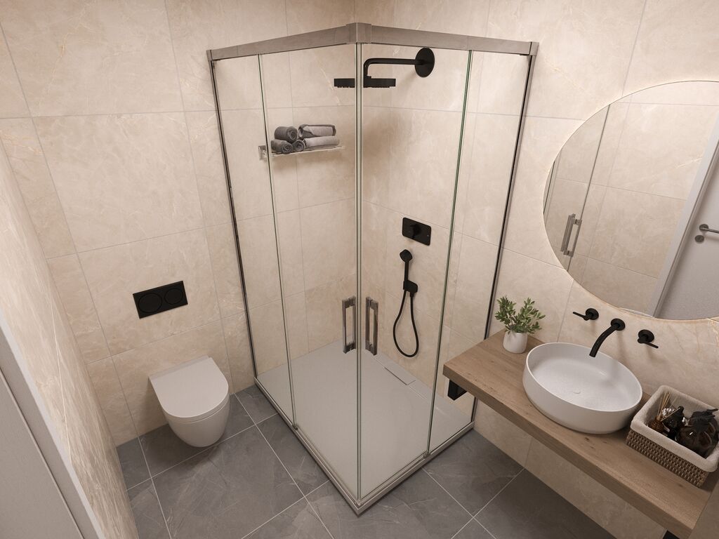 Součástí je také vybavení, u kterého si sami určíte barevné odstíny všech povrchů pro vinylové podlahy a vstupní i interiérové dveře. Dále je možná instalace vestavěných skříní a šatního systému dle individuálních požadavků.