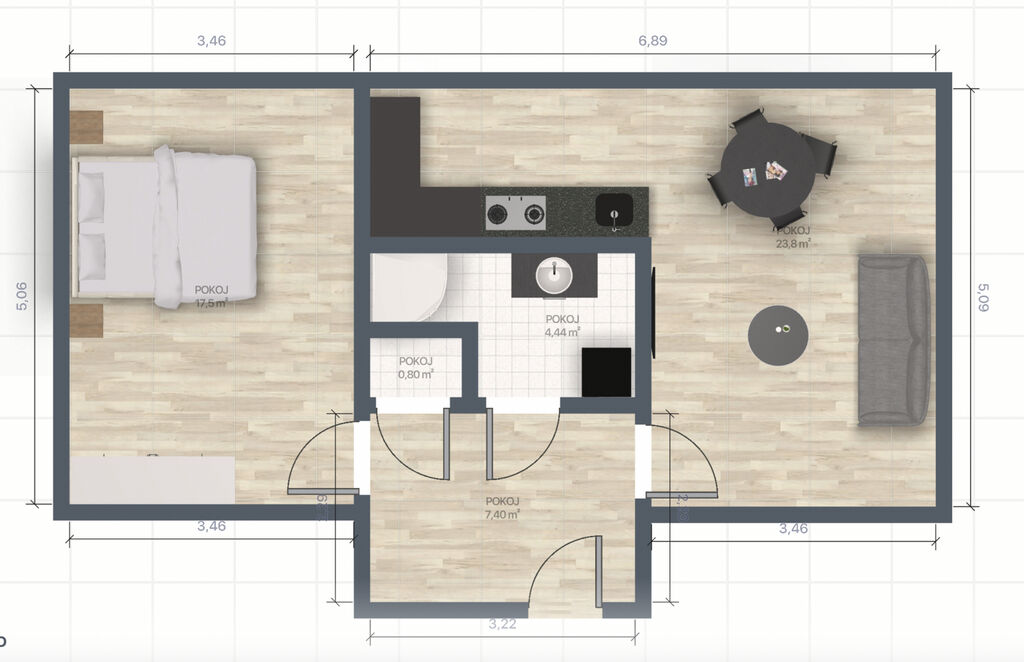 Vyobrazený nábytek není součástí ceny, pouze ukazuje možné řešení a variabilitu jednotlivých pokojů.
