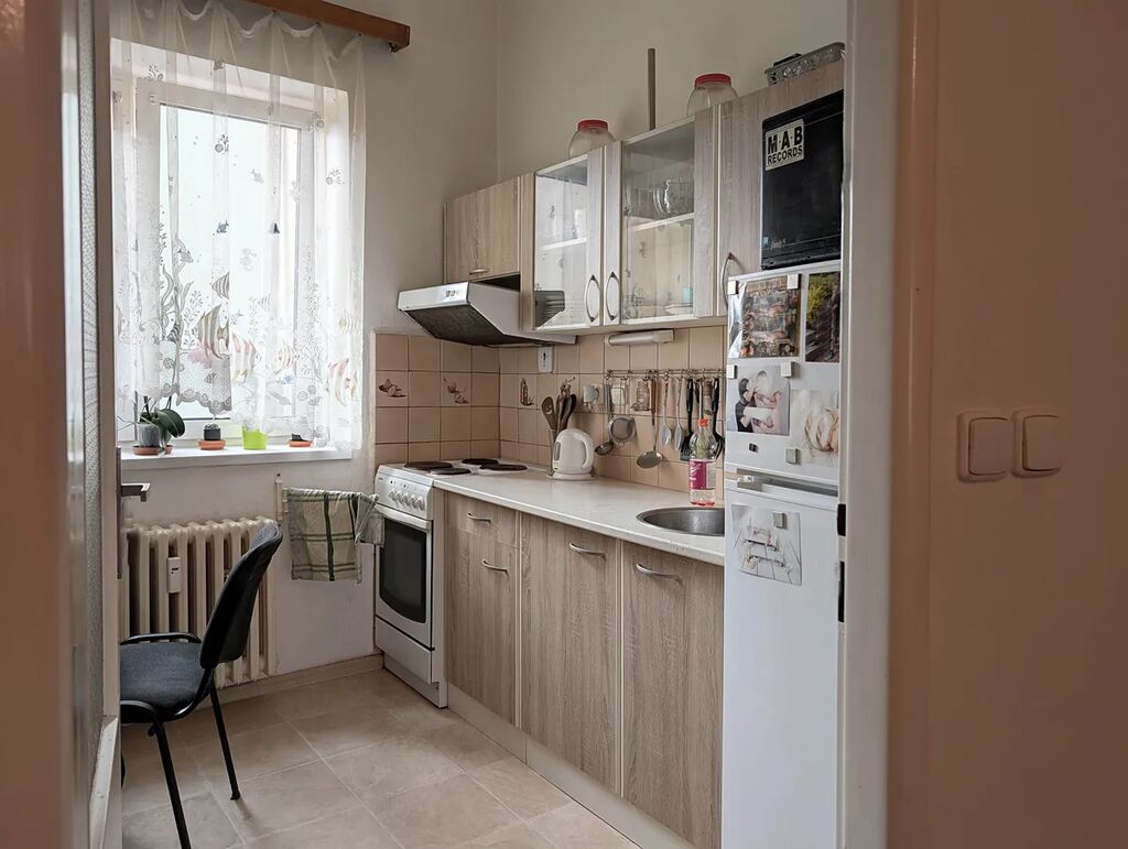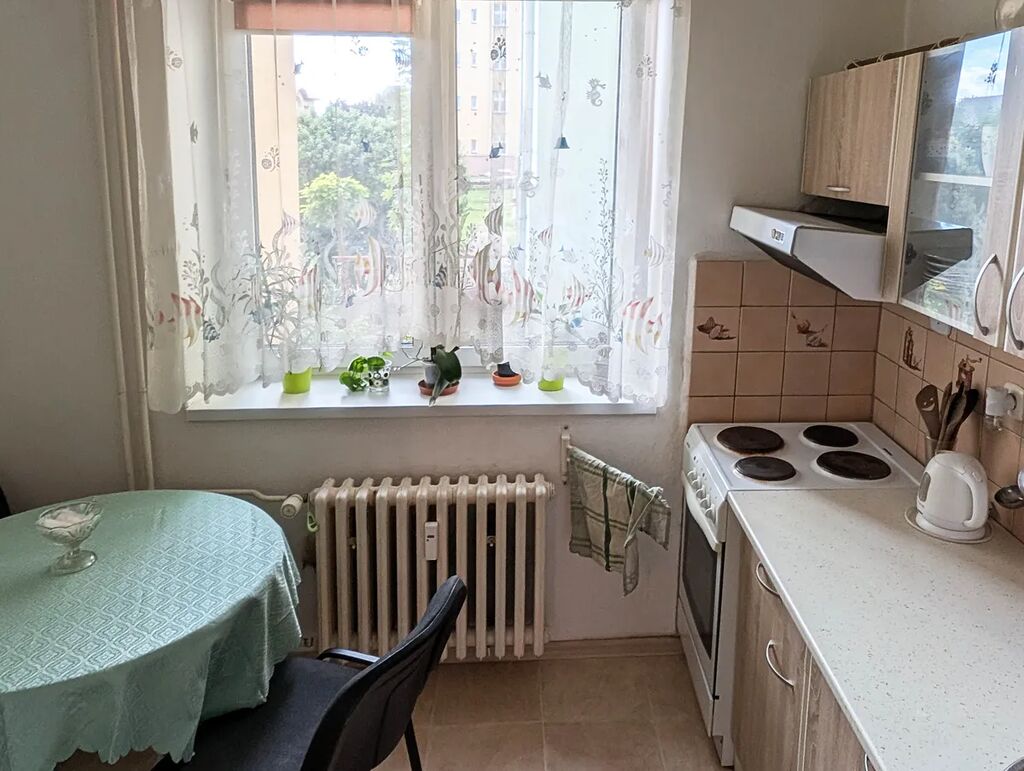 Byt má velmi dobrou dispozici, do kuchyně lze umístit menší jídelní stůl a výhodou je i prostorná koupelna.