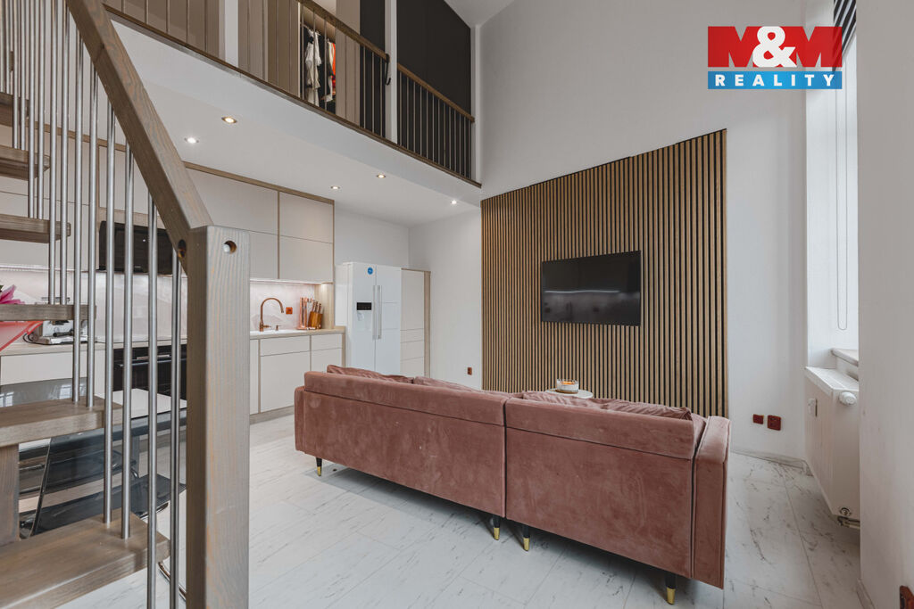 Nabízíme k prodeji originálně řešený, mezonetový byt o dispozici 2+kk s celkovou výměrou 76,97 m². Díky praktickému uspořádání s mezonety je byt aktuálně využíván jako 4+kk, což nabízí dostatek prostoru i pro rodinné bydlení. Bytová jednotka se nachází ve 3. NP cihlového domu s výtahem na Husově náměstí v Klatovech. Interiér bytu zaujme vzdušností a netradičním rozvržením prostoru. Každá z místností má vlastní mezonet, který lze využít například jako ložnici, pracovnu či útulné místo k odpočinku. V bytě je také praktická půdní komora pro uložení sezónních věcí. K nemovitosti náleží vlastní parkovací stání ve vnitrobloku za domem, což je velkou výhodou při bydlení v centru města. Z oken se otevírají nádherné výhledy na historické centrum. Vytápění i ohřev vody jsou řešeny centrálně plynovým kotlem, což zajišťuje nízké provozní náklady. K dispozici je i prostorná společná kolárna. V okolí je veškerá občanská vybavenost. Vřele doporučujeme prohlídku nemovitosti!