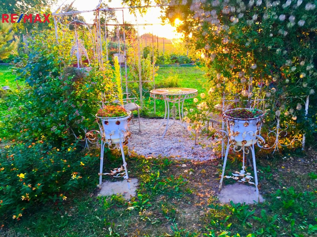 Dům má samostatnou polohu na kraji vesnice, ale není to samota. Třídílná zahrada skýtá větší množství romantických posezení, včetně altánu a dalších odpočinkových míst dle postupu denního světla, jako stvořených pro relaxaci a načerpání duševní pohody.