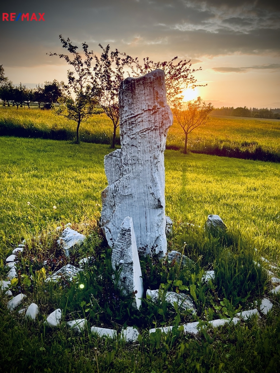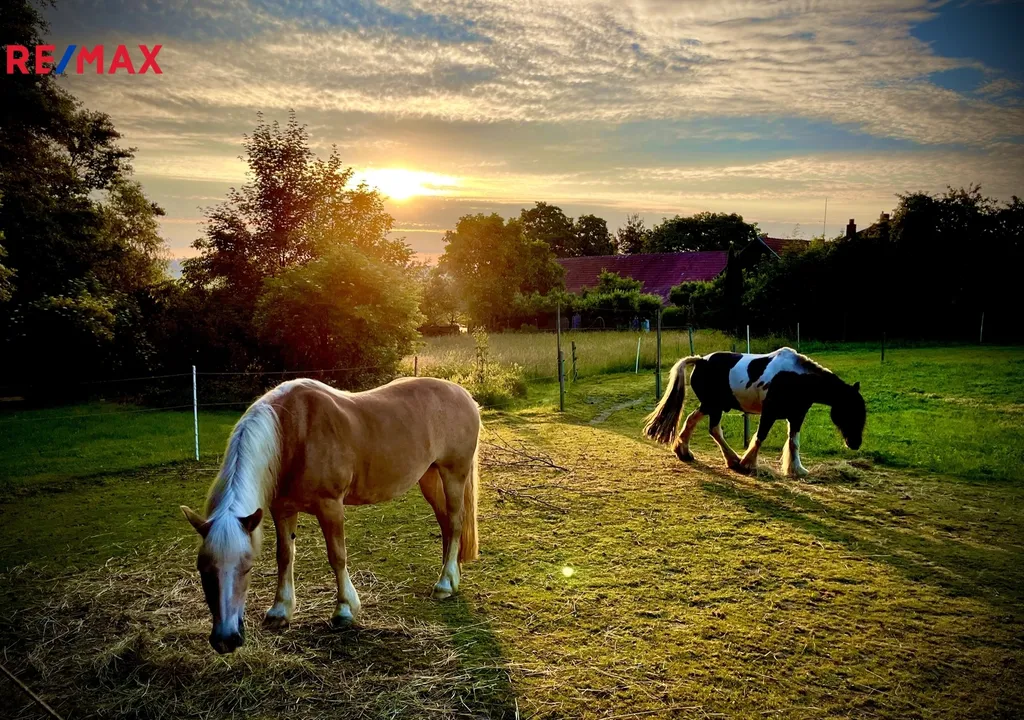 Dům má samostatnou polohu na kraji vesnice, ale není to samota. Třídílná zahrada skýtá větší množství romantických posezení, včetně altánu a dalších odpočinkových míst dle postupu denního světla, jako stvořených pro relaxaci a načerpání duševní pohody. Na části pozemku se pasou koně sousedů (věc příští domluvy).