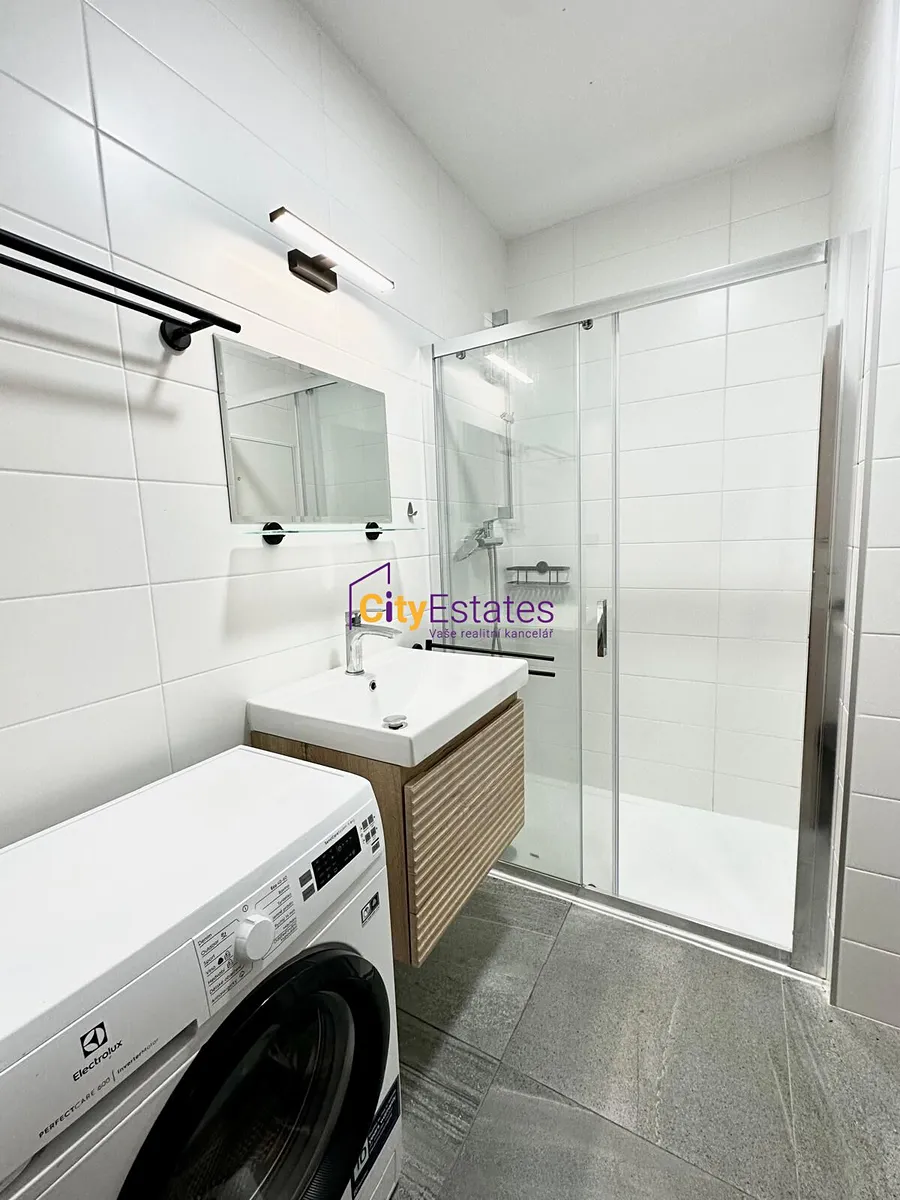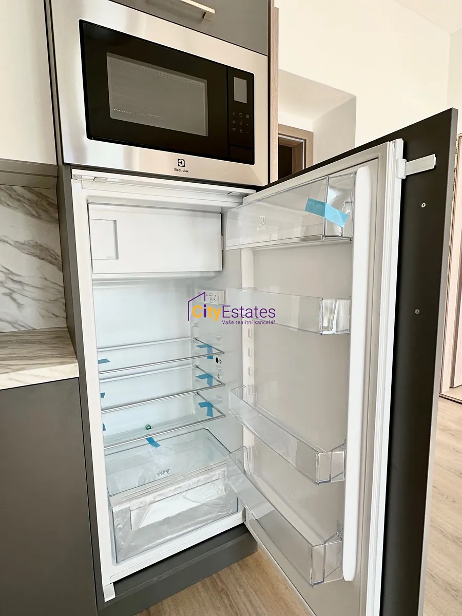 V bytě je plně vybavený kuchyňský kout s moderními spotřebiči značky Electrolux (indukční varná deska, elektrická trouba, myčka, lednice s mrazákem). V koupelně s WC je umístěn prostorný sprchový kout a pračka Electrolux. Podlahy ve všech pokojích jsou vinylové, okna izolační dvojskla. Orientace bytu je na východ a západ.