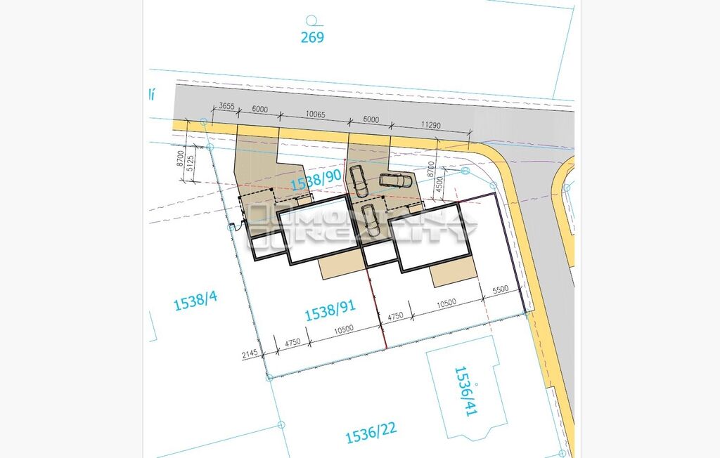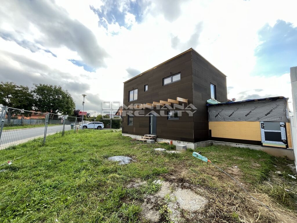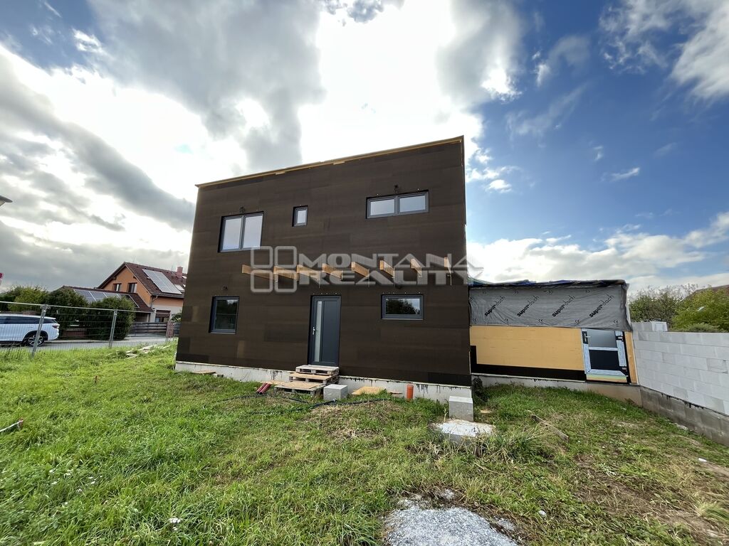 Nabízíme k prodeji novostavbu rodinného domu ve Velkém Týnci u Olomouce. Dům je velmi velkoryse řešen jako 5+kk s technickou místností navazující na dům. Parkování pod přístřeškem před domem a dalším místem na parkování pro dvě auta. Přízemí je dispozičně řešené se zádveřím a vstupní chodbou, koupelnou s WC, pokojem, dále pak prostorný obývací pokoj s kuchyní a masivním schodištěm do patra. V prvním patře 3 samostatné pokoje, koupelna s toaletou. Obývací část spojená s kuchyní se vstupem přes prosklený portál na terasu a pozemek. V kuchyňské části se počítá i s praktickou komorou. V patře koupelna s možností umístění vany a sprchového koutu. Podlahové topení a ohřev vody je řešen tepelným čerpadlem vzduch voda. Novostavba domu je řešená jako difuzně otevřená dřevostavba s provětrávanou fasádou designovými panely James Hardie. Okna jsou plastová šesti komorová s trojskly včetně vstupních dveří. Novostavba má nachystanou přípravu na venkovní žaluzie a klimatizaci, v technické místnosti je možnost instalace toalety. Dům se nabízí jako dokončená stavba pouze bez podlahových krytin, obložek s dveřmi a koupelen s tím, že nový majitel domu si je může dokončit dle svých představ. Celková užitná plocha domu činí 150 m2, dále pak zastřešené venkovní stání o výměře 30 m2 a pozemek o celkové výměře 502 m2. Dům je napojen na inženýrské sítě, a to vodovod, kanalizaci, elektřinu, dešťová voda je svedena do akumulační nádrže s přepadem. Energetická náročnost stavby je B – velmi úsporná. Velkou výhodou je umístění domu, jedná se o rohový dům na ulici Podštampilí ve Velkém Týnci. Dokončení nemovitosti se plánuje na jaro 2026. Cena nemovitosti 10.500.000,- Kč, včetně provize a právních služeb realitní kanceláře. Možnost financování úvěrem zdarma našim partnerem. Více informací Vám rád zodpovím osobně.