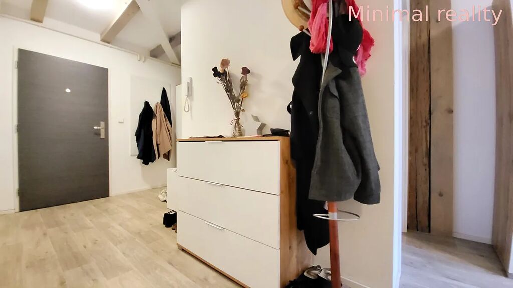 Byt je dispozičně dobře řešený. Z prostorné chodby je vstup do kuchyně, třech pokojů, koupelny a samostatné toalety. Po dřevěném schodišti vystoupáme do čtvrtého pokoje.