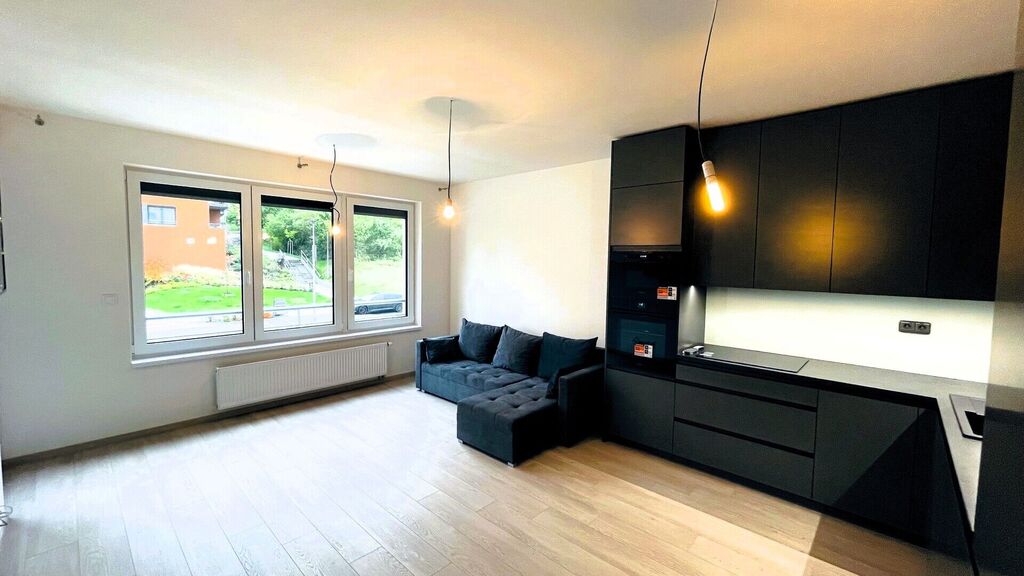 Byt je dokončen ve vysokém standardu, který se vyznačuje kvalitními materiály, nadčasovým designem a důrazem na detail. Součástí vybavení jsou plastová okna s venkovními roletami, bezpečnostní vchodové dveře a nadstandardní obklady a dlažby v koupelně. Prosvětlený obývací pokoj s kuchyňským koutem plynule navazuje na balkon, který poskytuje příjemné místo k odpočinku. Byt působí světlým a vzdušným dojmem, nabízí praktické řešení úložného prostoru a příjemnou atmosféru domova. Dům se právě dokončil a v bytě ještě nikdo nebydlel.