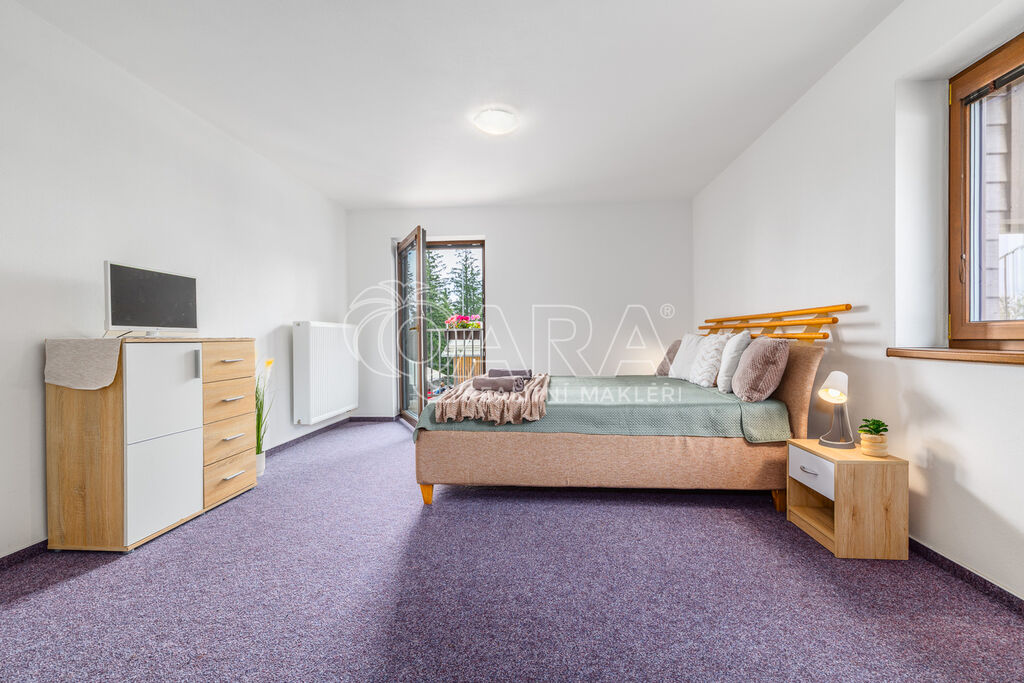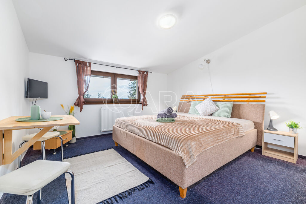 Samotná budova disponuje více než 1 200 m² užitné plochy a je rozdělena do tří podlaží. K dispozici je celkem 17 pokojů, včetně prostorných rodinných apartmánů, s celkovou kapacitou 74 lůžek. Nad rámec této kapacity jsou součástí hotelu také prostory pro personál a místnosti využívané majitelem pro vlastní potřebu. Zázemí doplňuje restaurace pro 80 hostů a samostatný salonek pro 50 osob. Hotel je tak připraven nabídnout komfort nejen rodinám, ale také školám, sportovním skupinám nebo firemní klientele.