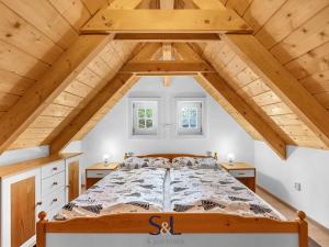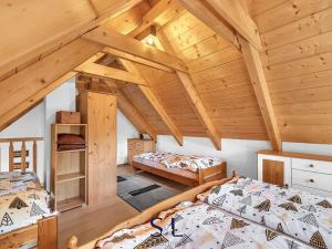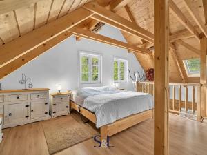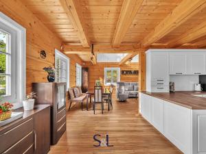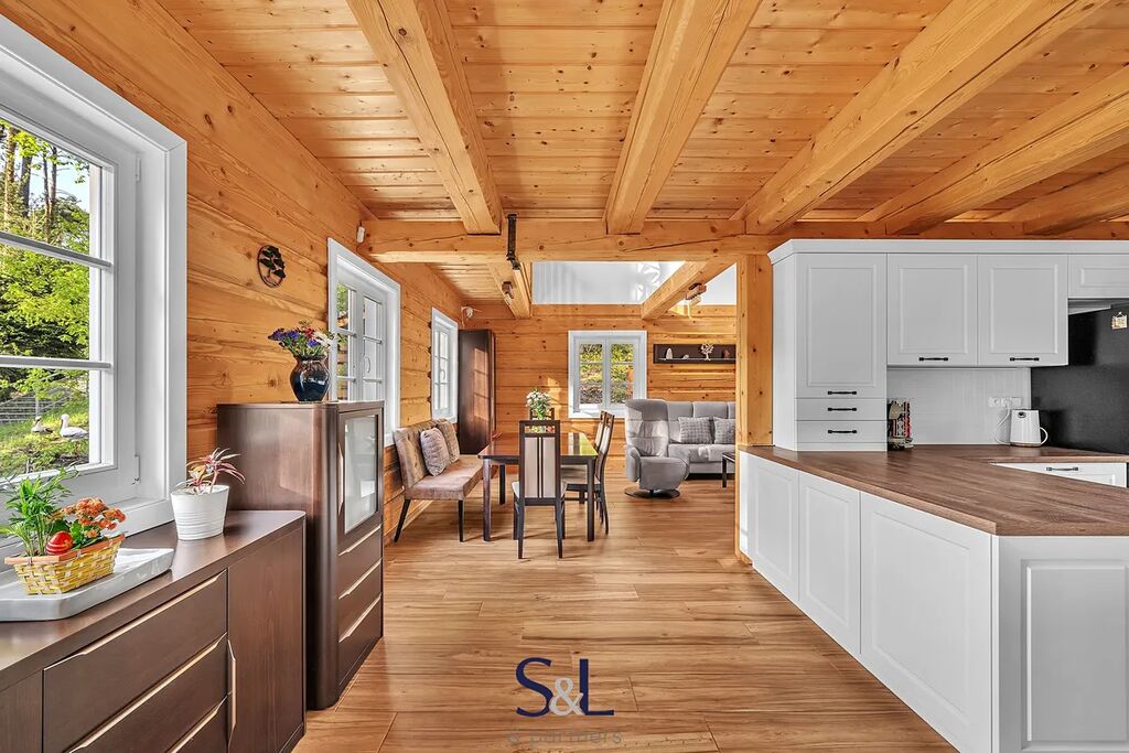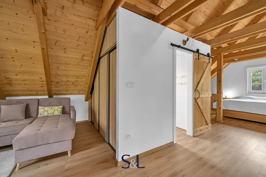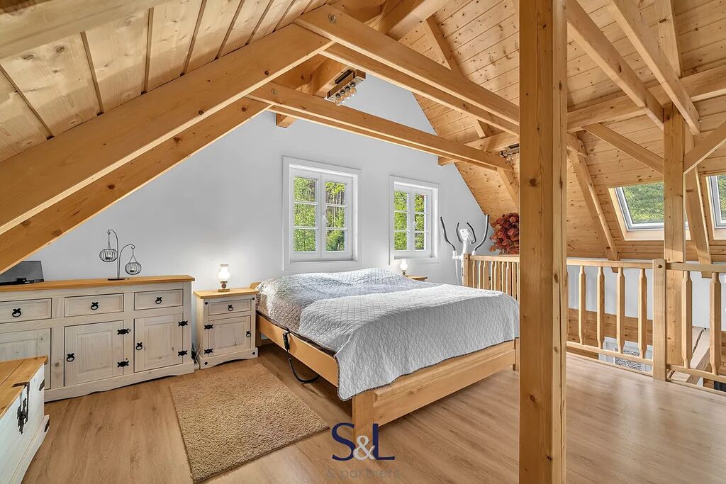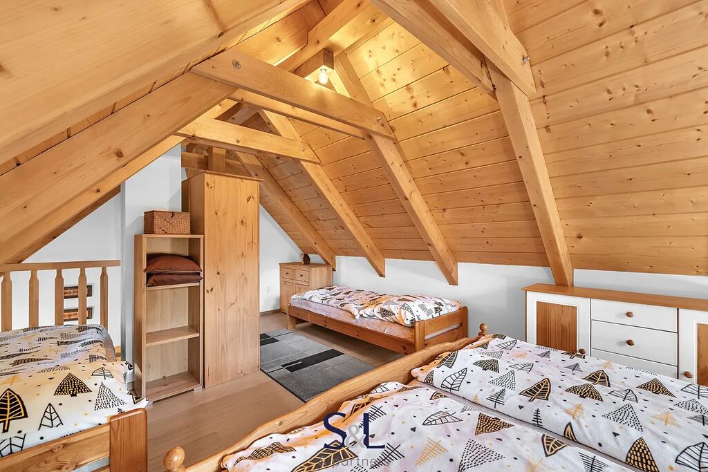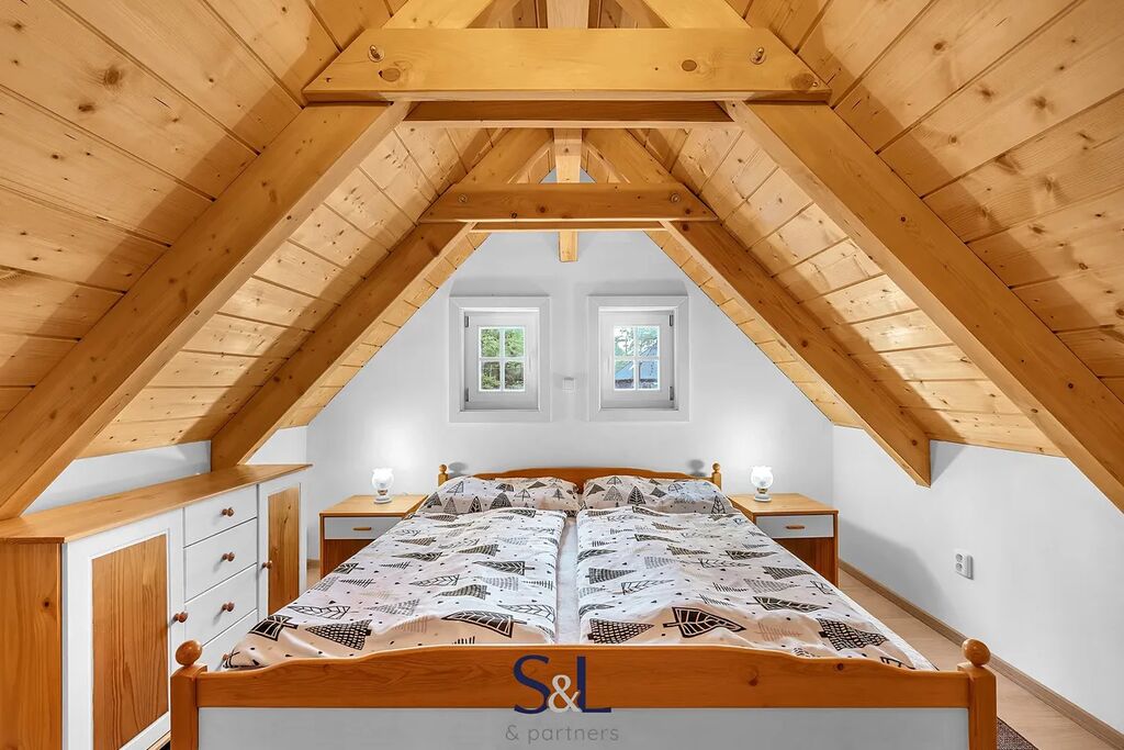 Hledáte místo, které spojuje tradiční řemeslné zpracování s moderní technologií a úsporným provozem? Právě jste ho našli. Nabízíme vám pečlivě vystavěnou novostavbu s roubeným přízemím z masivních trámů, obytným podkrovím a zděným suterénem. Nemovitost se nachází v malebné části obce Hamr na Jezeře a je doplněna o menší, aktuálně krátkodobě pronajímanou roubenku s názvem „Evelinka“. Od počátku výstavby bylo cílem vytvořit stabilní a komfortní zázemí pro rekreaci i trvalé bydlení. Díky promyšlenému řešení a druhé roubené stavbě nabízí nemovitost nejen klid v přírodě, ale i investiční příležitost.