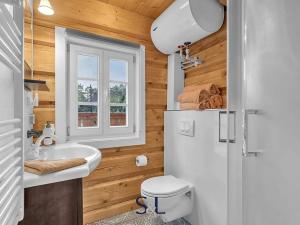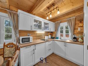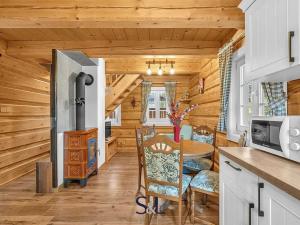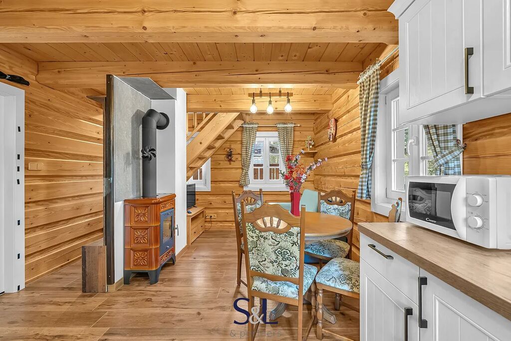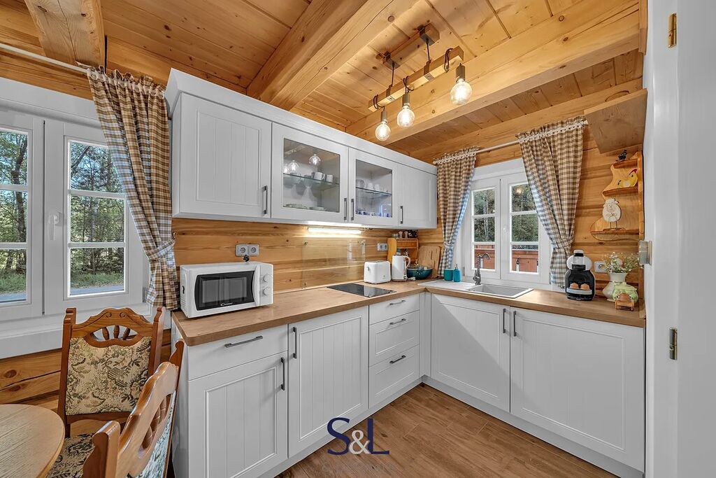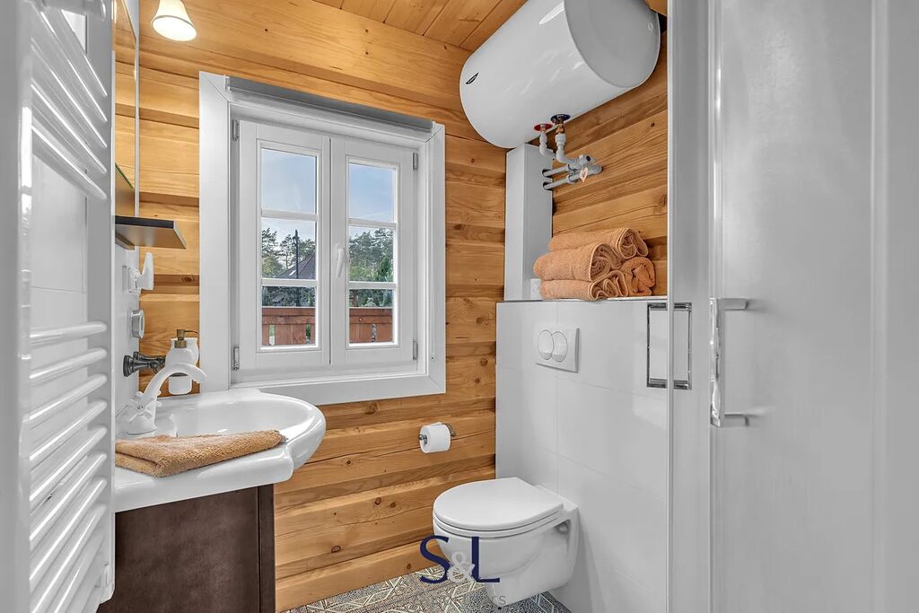 Na pozemku se nachází také menší samostatná roubenka, zkolaudovaná jako jiná stavba, která je od května 2023 úspěšně krátkodobě pronajímána. Hlavním zdrojem tepla je elektrické podlahové topení Hevolta, které doplňují stylová kamna na dřevo – ty dodávají nejen dostatek tepla, ale i útulnou atmosféru zejména během chladnějších dnů. Ohřev vody zajišťuje elektrický bojler.