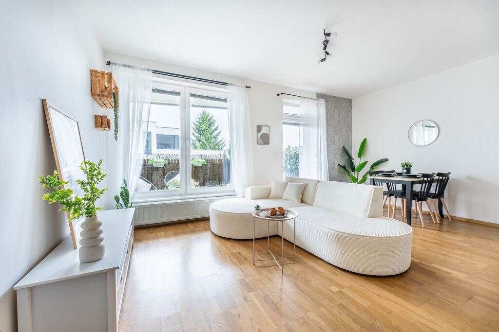 Hlavní předností bytu je soukromá zahrádka, ideální pro odpočinek, grilování nebo posezení s přáteli.