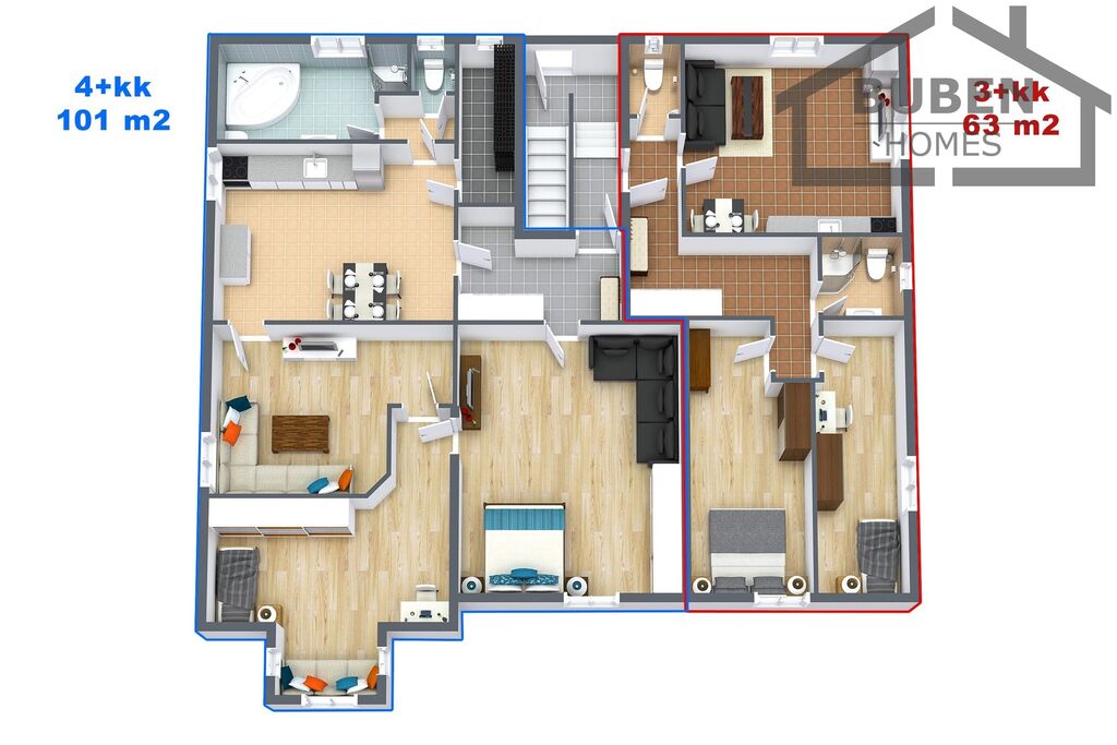 V ceně jsou zahrnuté kuchyňské linky a převážná část vybavení bytů 4+kk a 5+1.