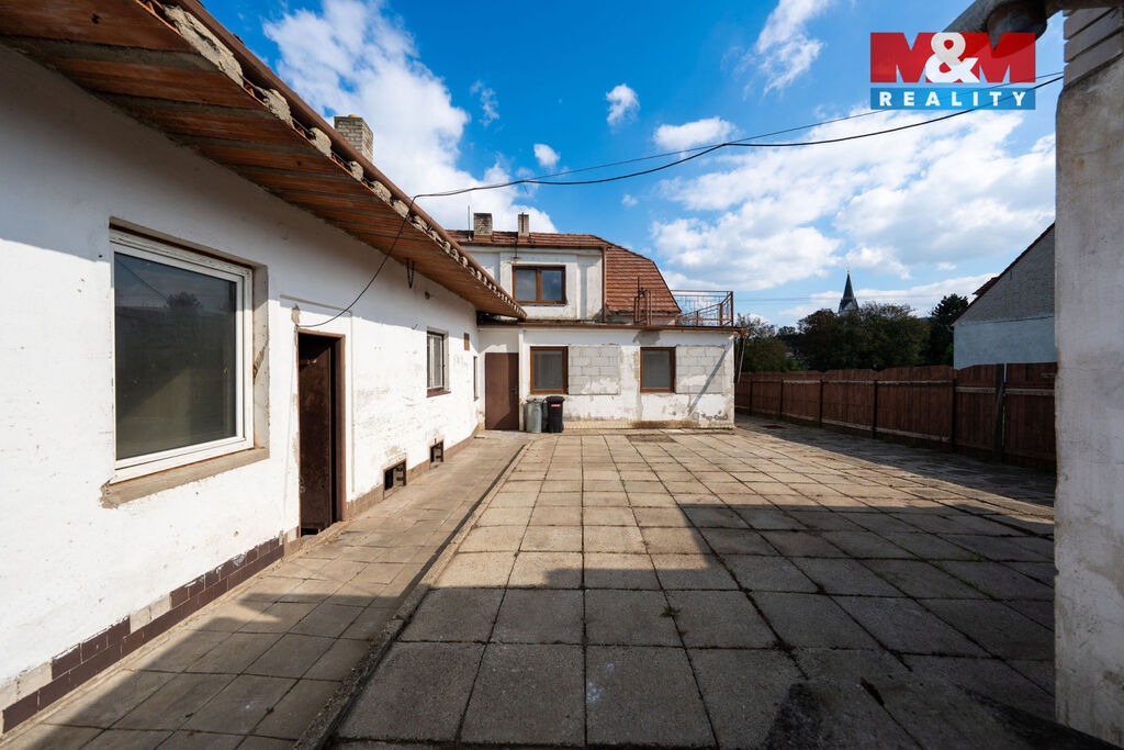 Na dům navazuje dvůr s technickými místnostmi (kotelna, uhelna, dřevník, tři místnosti) a garáží, která je rovněž podsklepená. K dispozici jsou dvě studny. Vedle domu je možný vjezd automobilem na dvůr.
