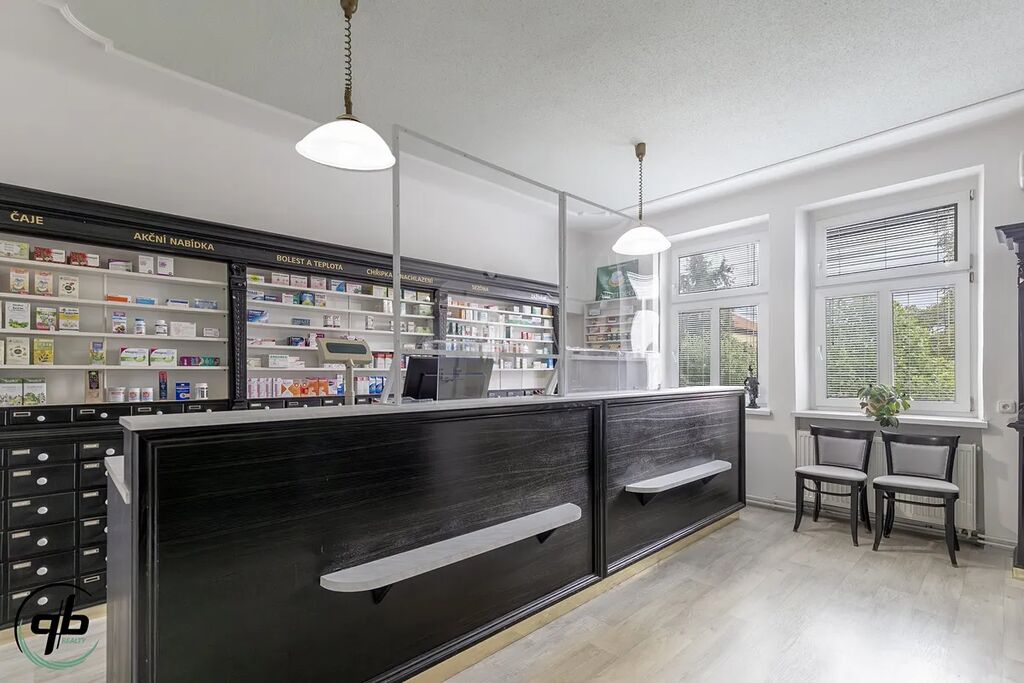 Přízemí (celé předmětem prodeje, vyjma společné chodby): vstupní chodba se dvěma vchody (hlavní a samostatný), čtyři průchozí a samostatné místností, prostor lékárny, umývárna, toaleta, úklidová místnost. Součástí je také bytová jednotka aktuálně využívána jako lékařská ordinace (kuchyně, pokoj, ložnice, koupelna). Celkové uspořádání odpovídá dispozici 7+1 s příslušenstvím.