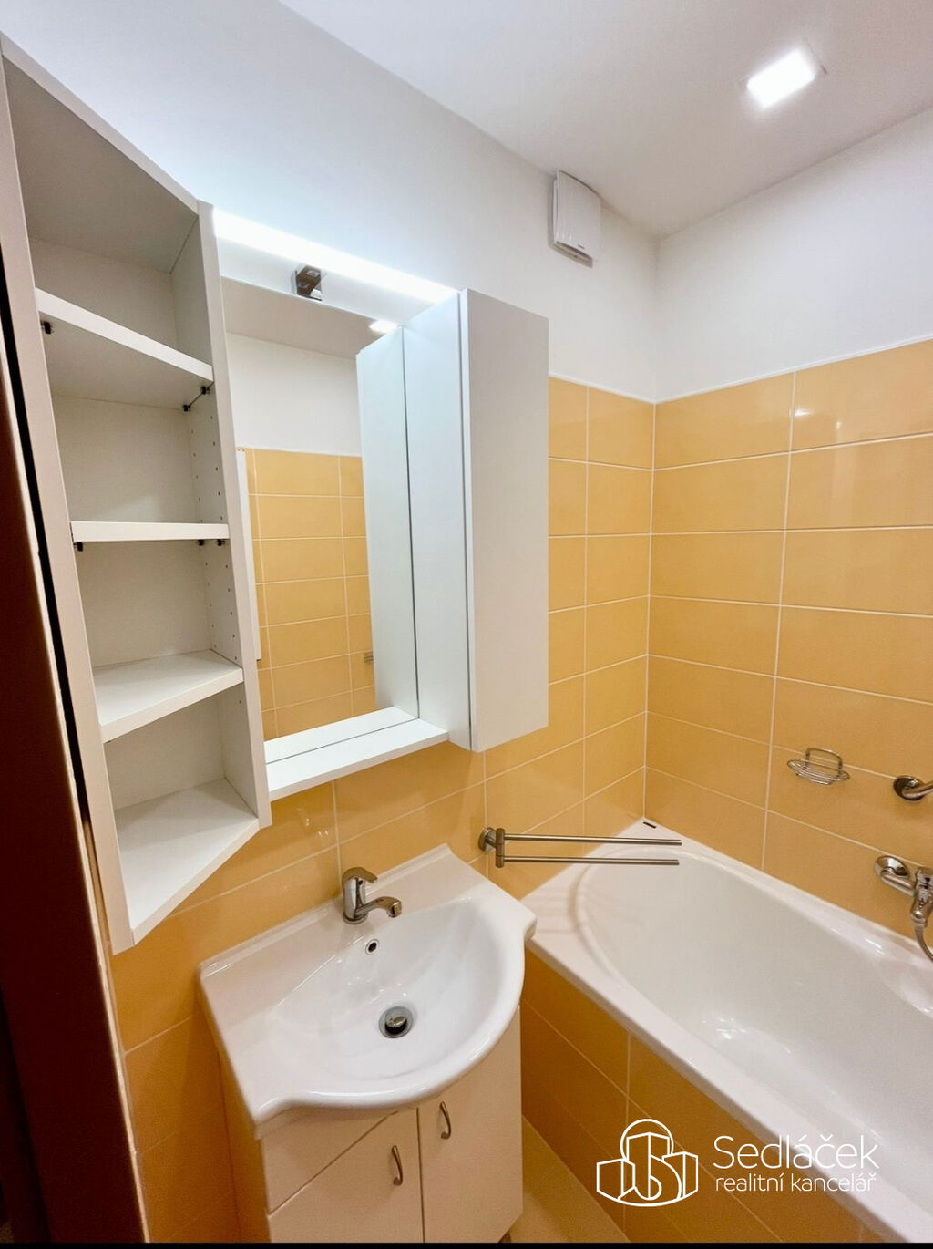 Nová kuchyňská linka je vybavena vestavěnými spotřebiči, samozřejmostí je LED osvětlení v celém bytě, které snižuje náklady na bydlení. Velká vestavěná skříň v chodbě poskytuje dostatek úložného prostoru. Koupelna je vybavena vanou a závěsnou skříňkou se zrcadlem, toaleta je samostatná.