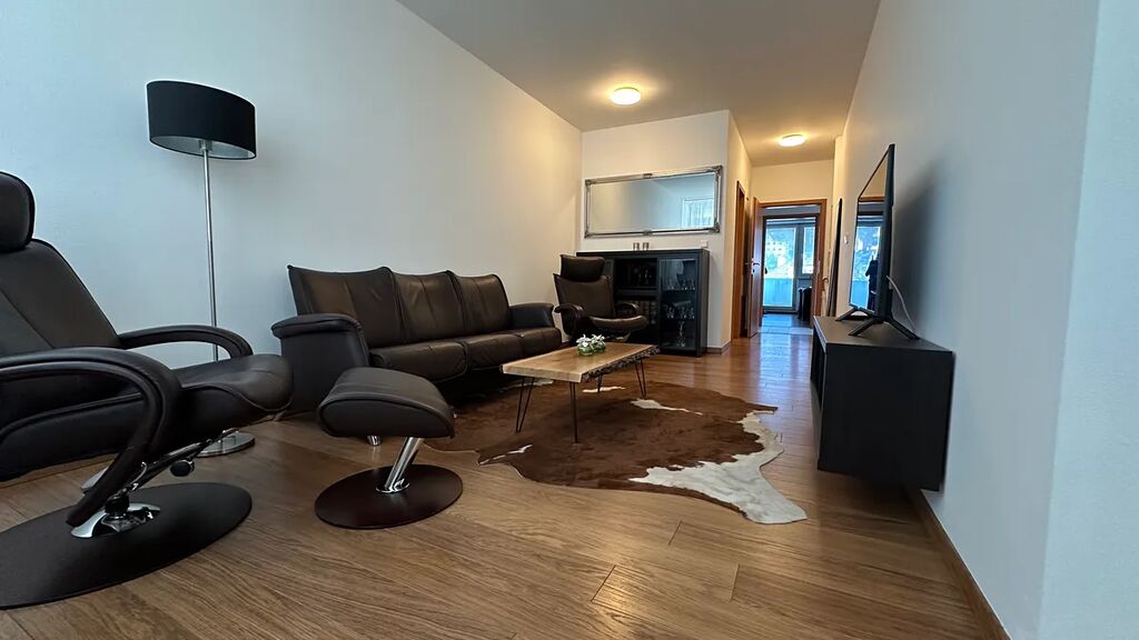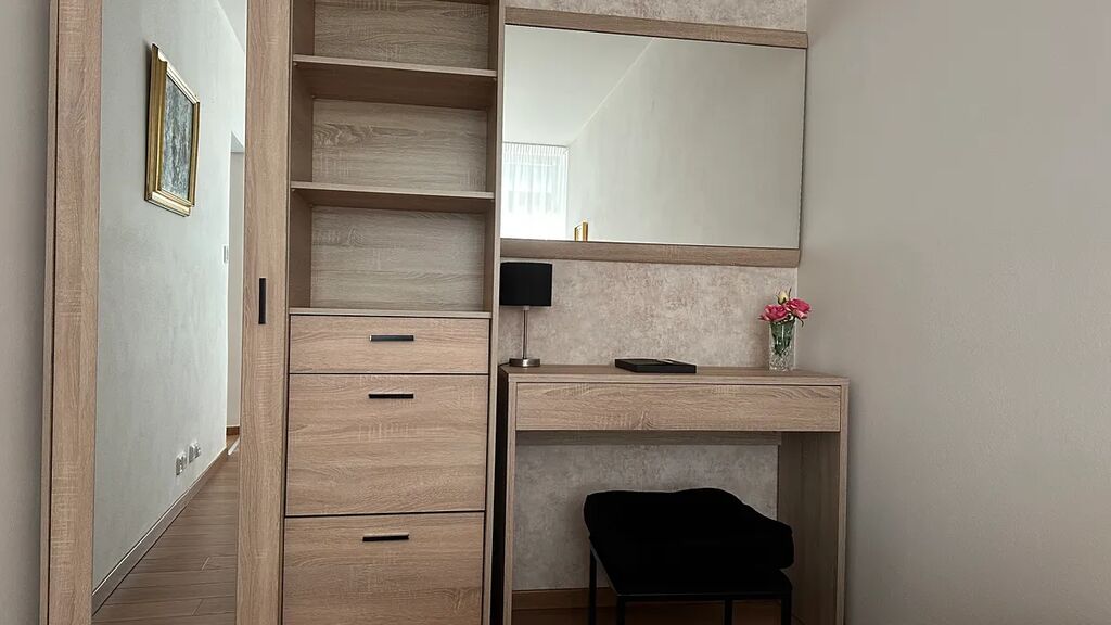 Nabízíme k pronájmu luxusní byt se dvěma pokoji v 1. patře domu na hlavní třídě v Luhačovcích. Byt sestává z obýacího pokoje a ložnice s výstupy na slunnou terasu, koupelny s WC a sprchovým koutem. Byt je velmi příjemný, kompletně zařízený, kromě kuchyňské linky, která v bytě není. Je tam ale nová lednice a mikrovlnná trouba. K bytu patří parkovací místo na soukromém pozemku ve dvorním traktu. Byt je vhodný k bydlení a díky poloze na hlavní třídě i ke komerčnímu využití (např. kancelář)