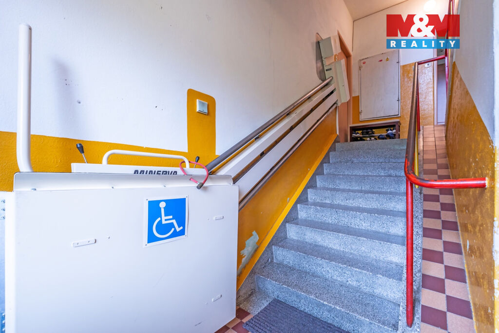 Byt je příjemně prosvětlený, udržovaný a působí velmi útulně. Disponuje novými plastovými okny, zachovalými parketami a bezbariérovou koupelnou. V bytě je také praktické osvětlení na fotobuňky. Přístup do bytu usnadňuje vlastní plošina pro invalidy přímo na schodišti, takže byt je plně bezbariérový.