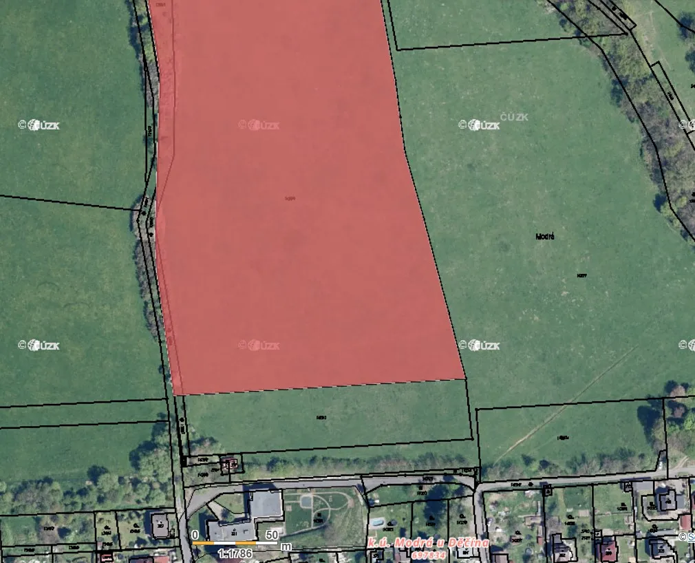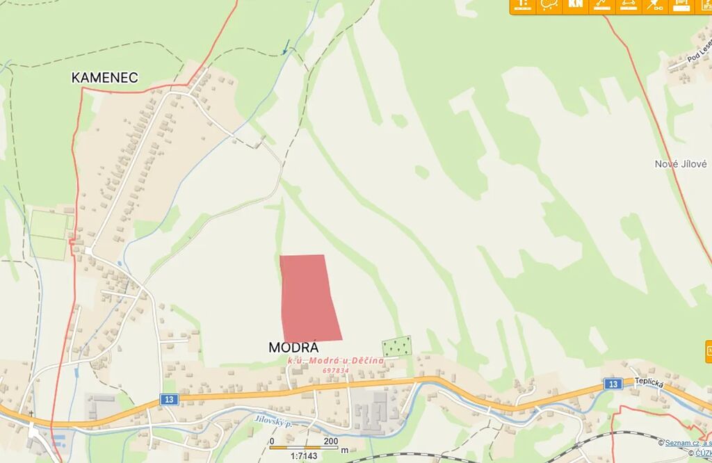 Nabízíme k prodeji zemědělské pozemky z LV-309 k.ú. Modrá u Děčína o celkové výměře 37 835 m2 se stavebním potenciálem. Pozemky se nacházejí ve svahu nad vesnicí s krásným výhledem.