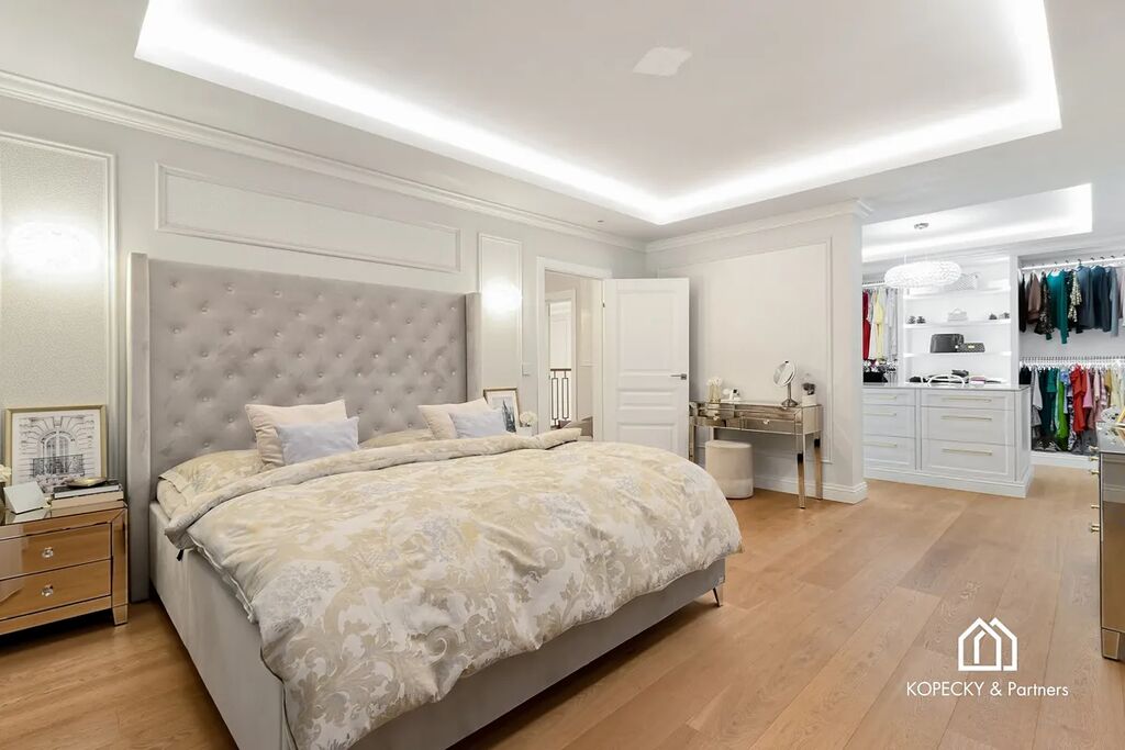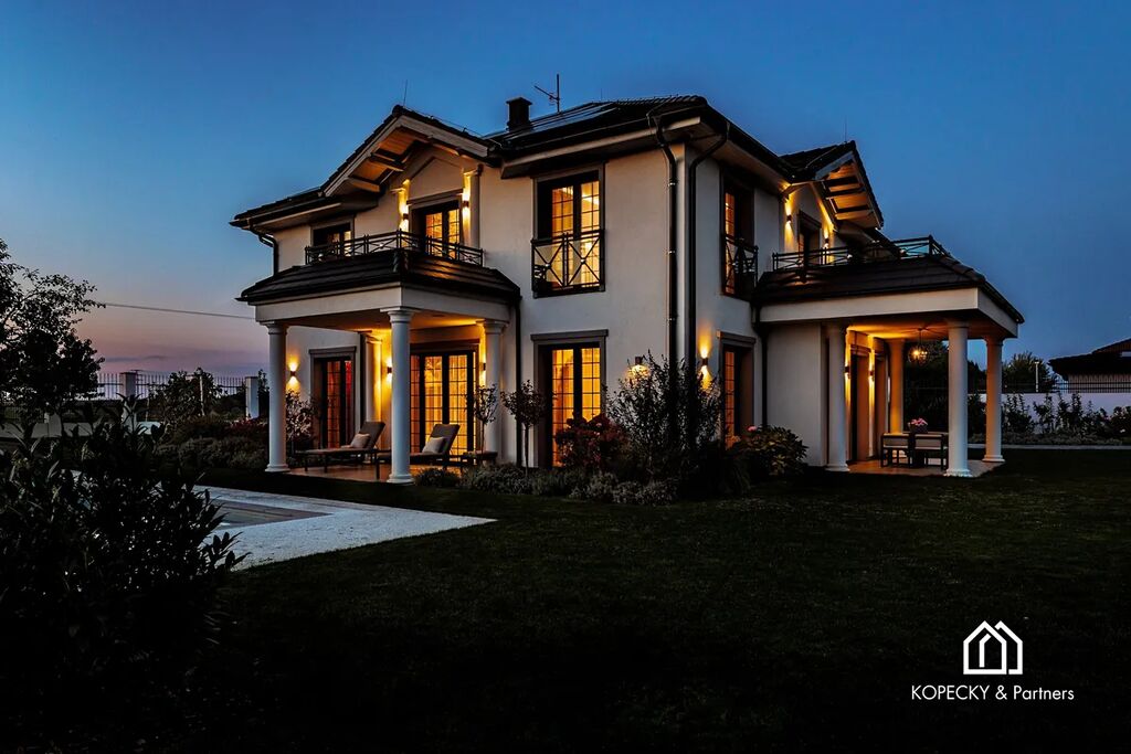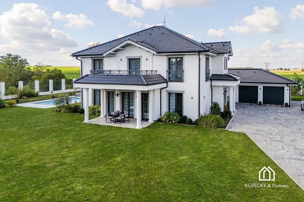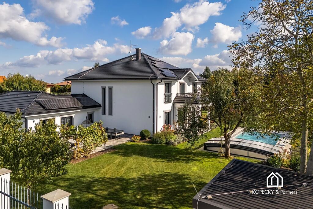 Exkluzivně nabízíme reprezentativní vilu v žádané obci Přezletice, jen pár minut od Prahy. Tato výjimečná nemovitost s užitnou plochou 405 m² stojí na soukromém pozemku o velikosti 2 211 m² a je dokonalou ukázkou propojení moderní architektury, špičkových technologií a nadčasového interiérového designu.
