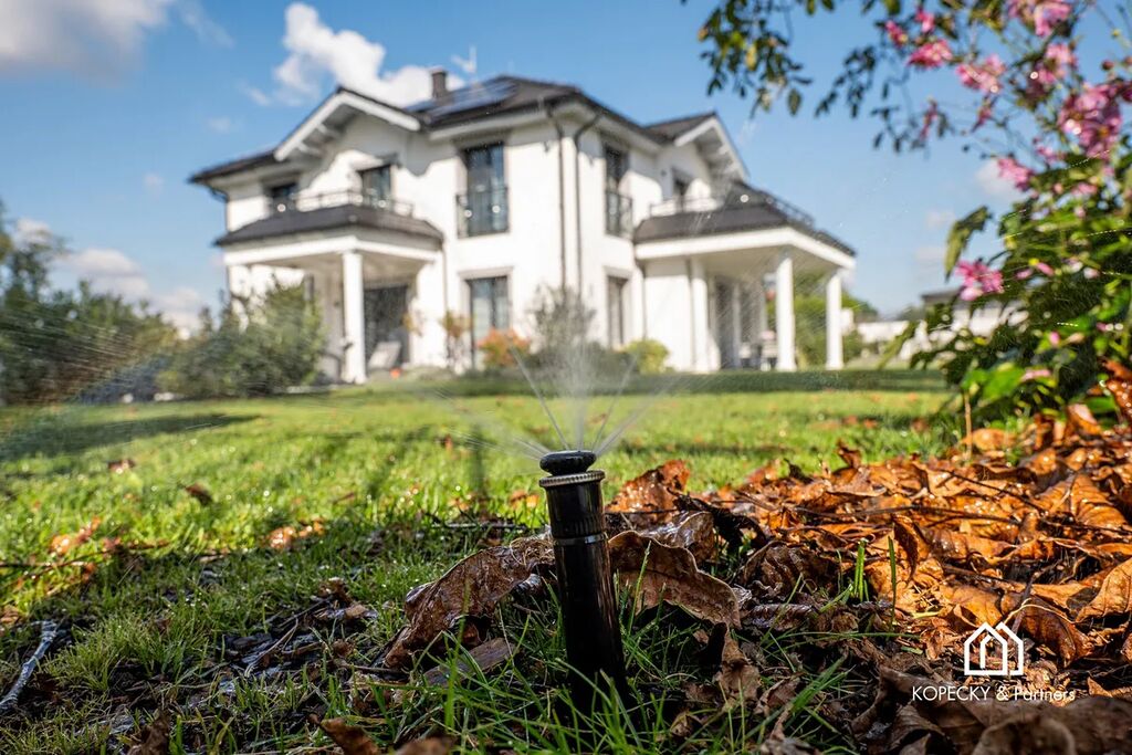 Na profesionálně udržované zahradě najdete zastřešený bazén 8×4 m se slanou vodou, zavlažovací systém, vrtanou studnu a zahradní domek. Parkování je zajištěno v dvojgaráži a na dalších plochách až pro 7 automobilů, včetně přípravy na dobíjení elektromobilů.