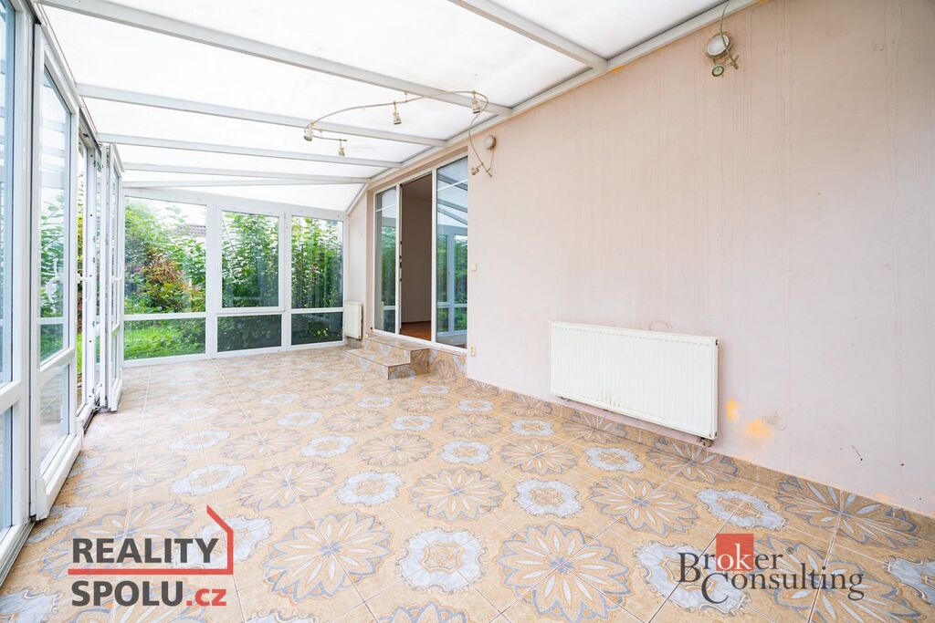 Do domu vstupujete přes vstupní halu o rozloze 6,4 m2. Hlavní obytnou část tvoří obývací pokoj o rozloze 31 m2 propojený s plně vybavenou kuchyní o rozloze 7,8 m2 a samostatnou spíží. Velkoformátovým francouzským oknem je obývací pokoj propojen se zastřešenou 18 m2 velkou zimní zahradou, která rozšiřuje obytný prostor a nabízí výhledy do zahrady s dostatkem soukromí. V přízemí máte k dispozici také samostatnou toaletu a praktickou šatnu a komoru.