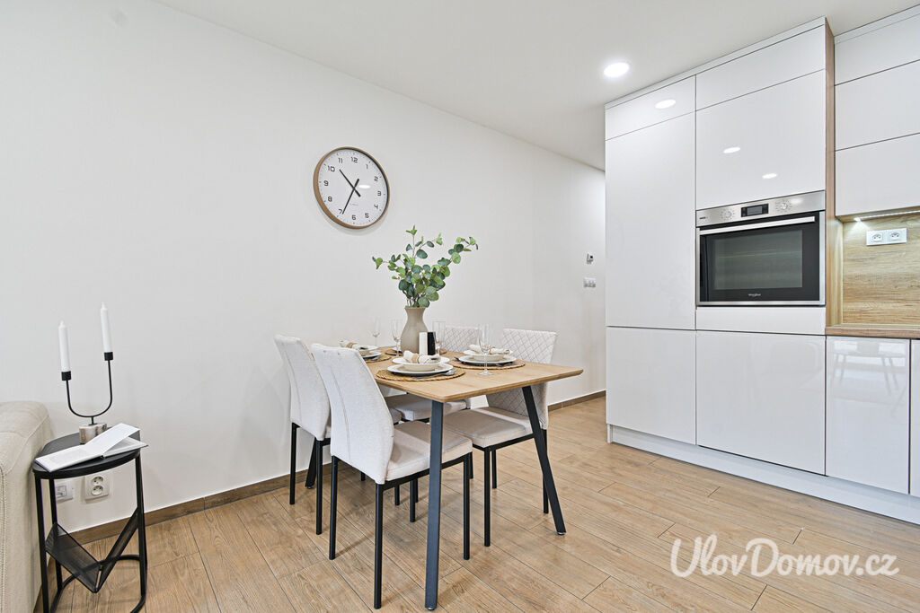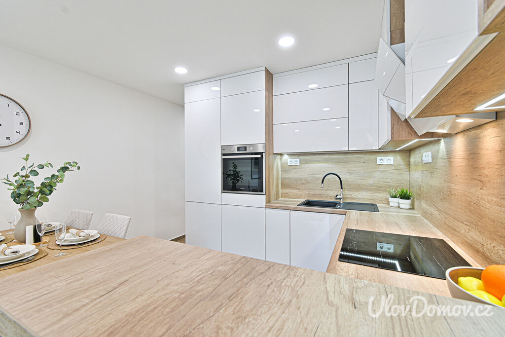 Nemovitost se prodává částečně vybavena. Součástí prodeje jsou kuchyňské spotřebiče – lednice s mrazákem, sklokeramická deska, trouba, digestoř. Interiér si můžete podrobně prohlédnout na 3D virtuální prohlídce.