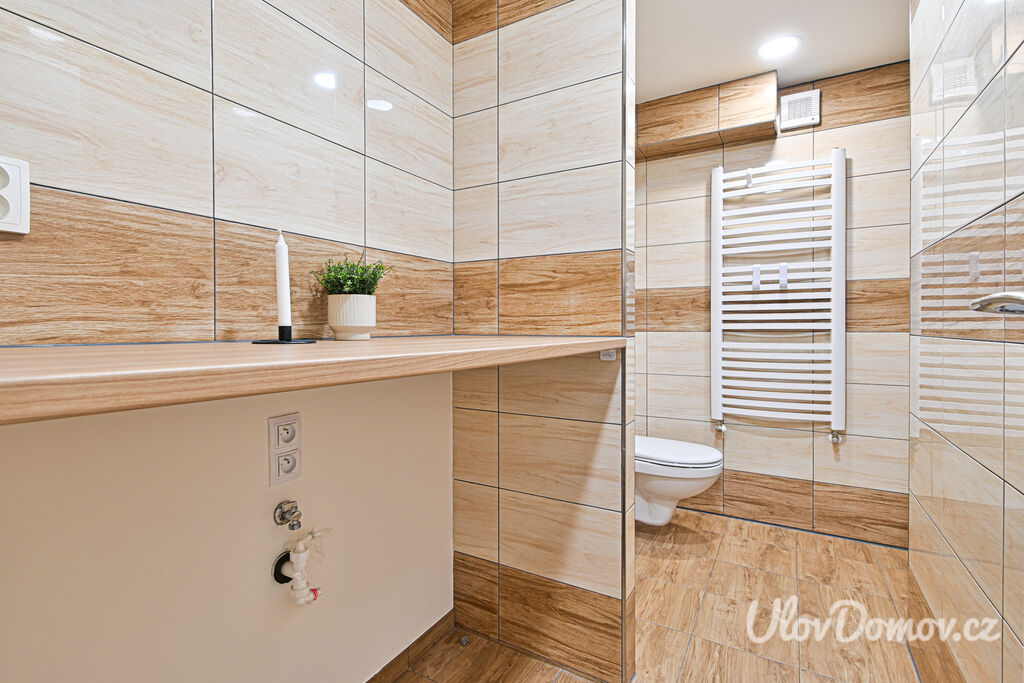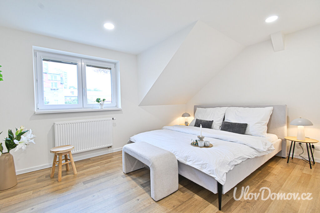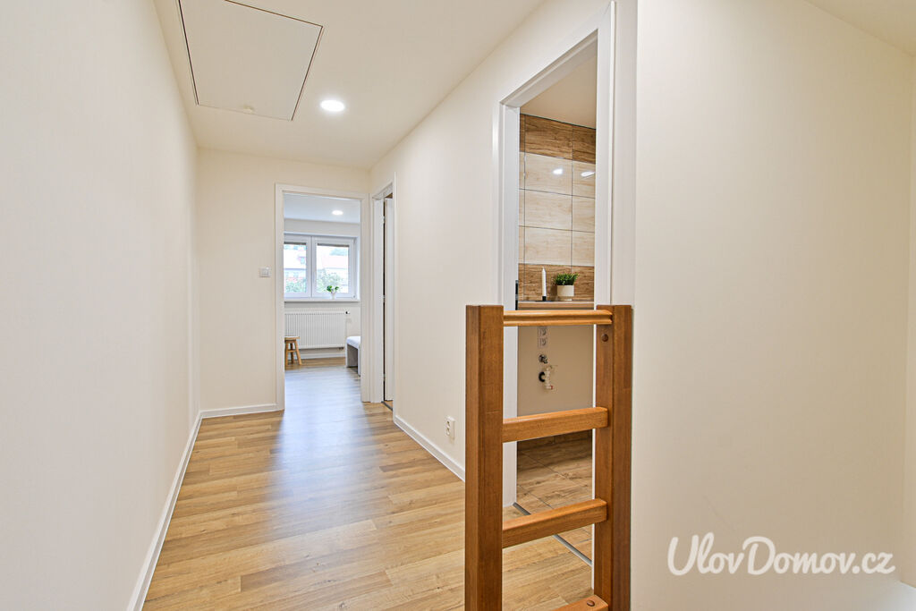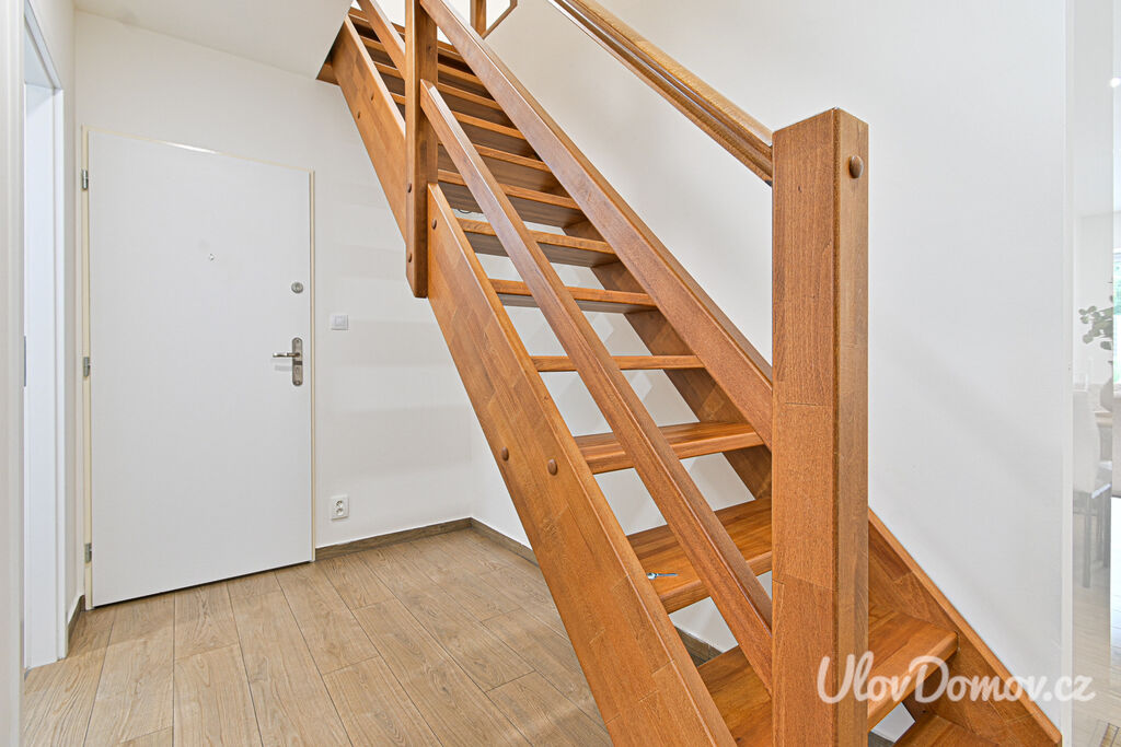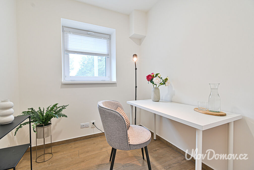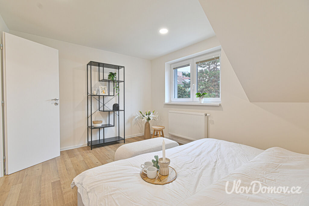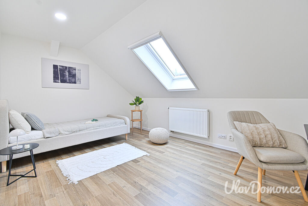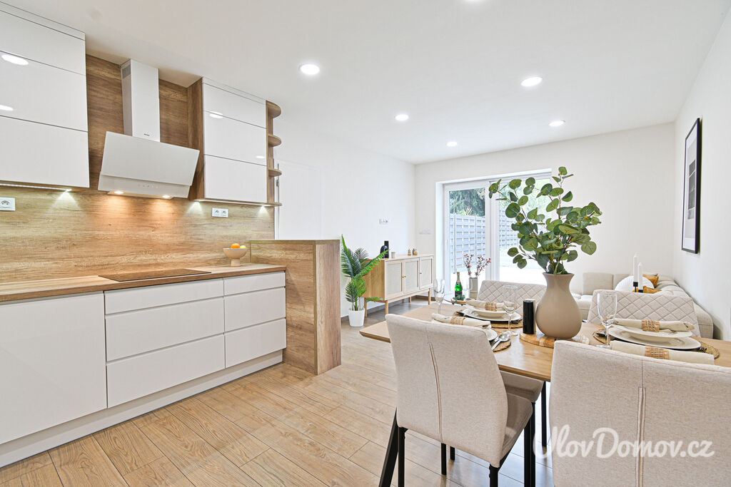 Ve výhradním zastoupení majitele nabízíme ke koupi bytovou jednotku 3+kk o podlahové ploše 85 m2 – polovinu dvojdomu. K bytu dále náleží terasa se zahradou o výměře 115 m², pracovna, kolárna/sklad a úložný prostor v podkroví. Dům, který prošel v roce 2020 kompletní rekonstrukcí, je rozdělen na 2 bytové jednotky. Technický stav odpovídá novostavbě (z původního domu zůstaly jen obvodové konstrukce).