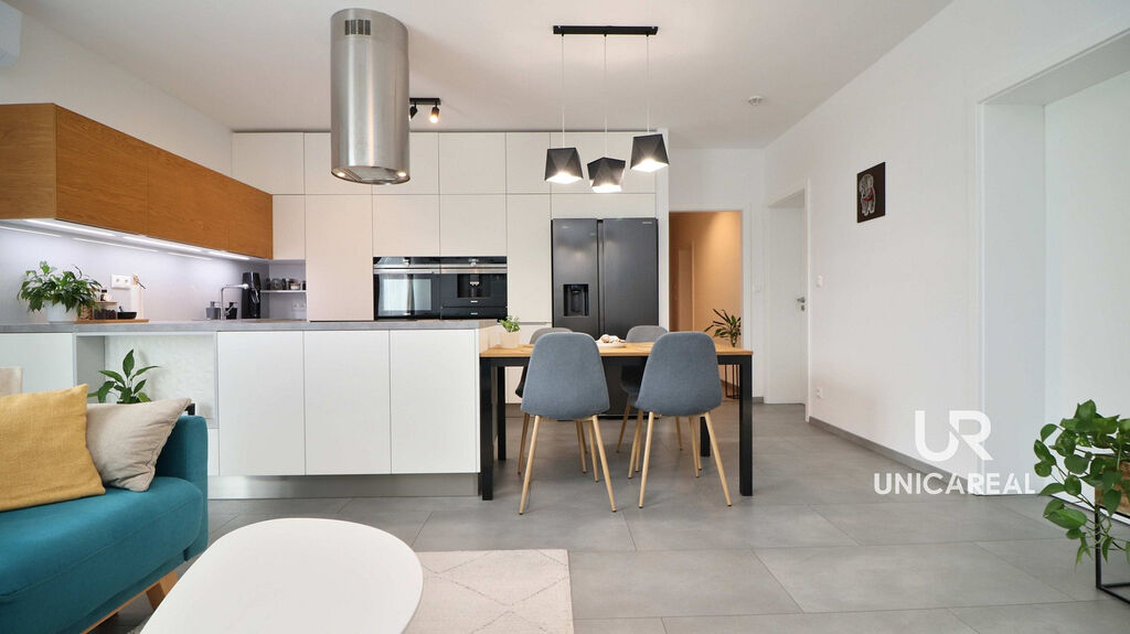 Kuchyně byla navržena od kuchyňského studia Sykora, vybavená vestavnými spotřebiči Siemens (myčka, indukční deska, trouba, kávovar a ohřevná zásuvka), luxusní americkou lednicí Samsung a designovou digestoří Elica.