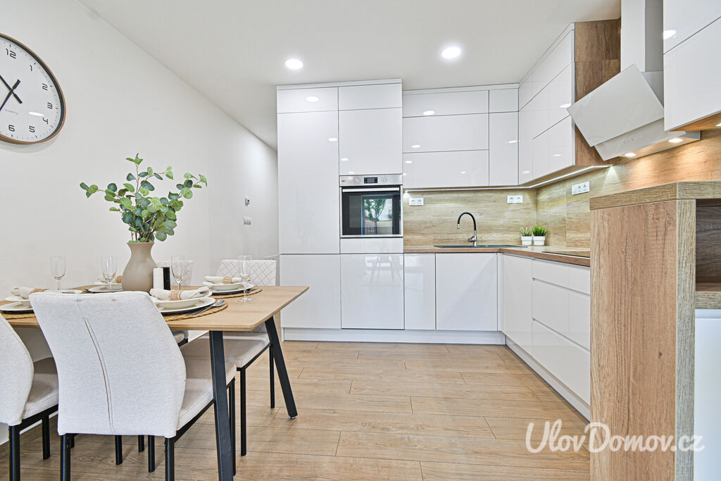 Nemovitost se prodává částečně vybavena. Součástí prodeje jsou kuchyňské spotřebiče – lednice s mrazákem, sklokeramická deska, trouba, digestoř. Interiér si můžete podrobně prohlédnout na 3D virtuální prohlídce.