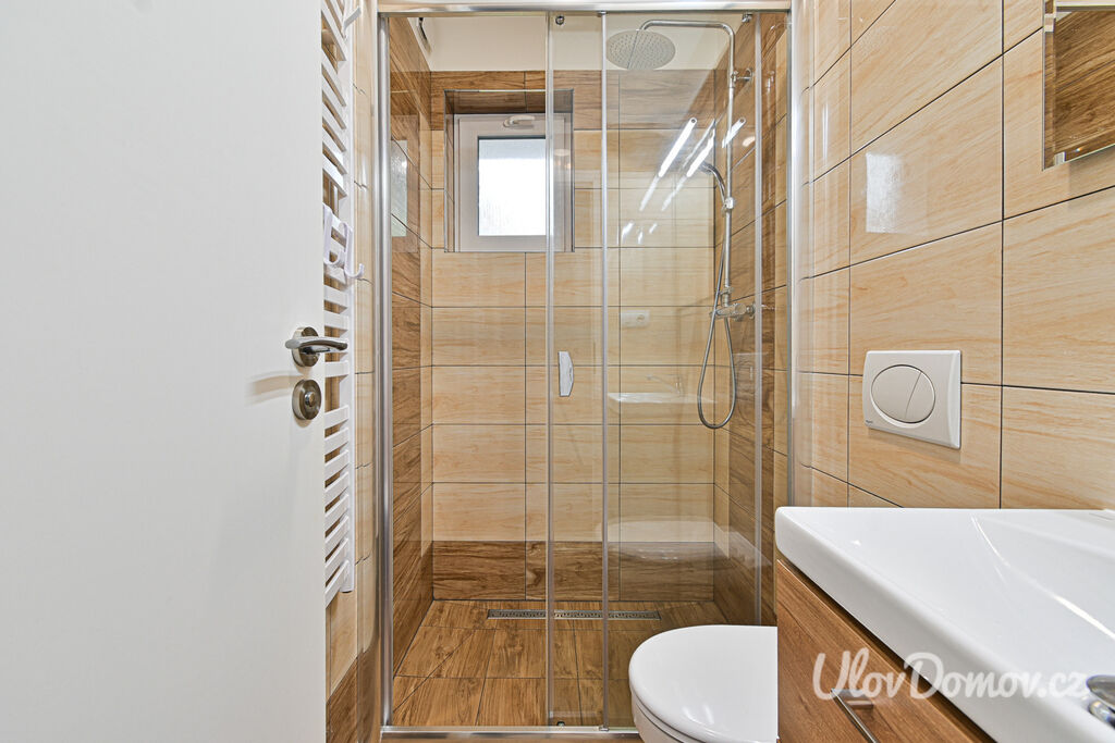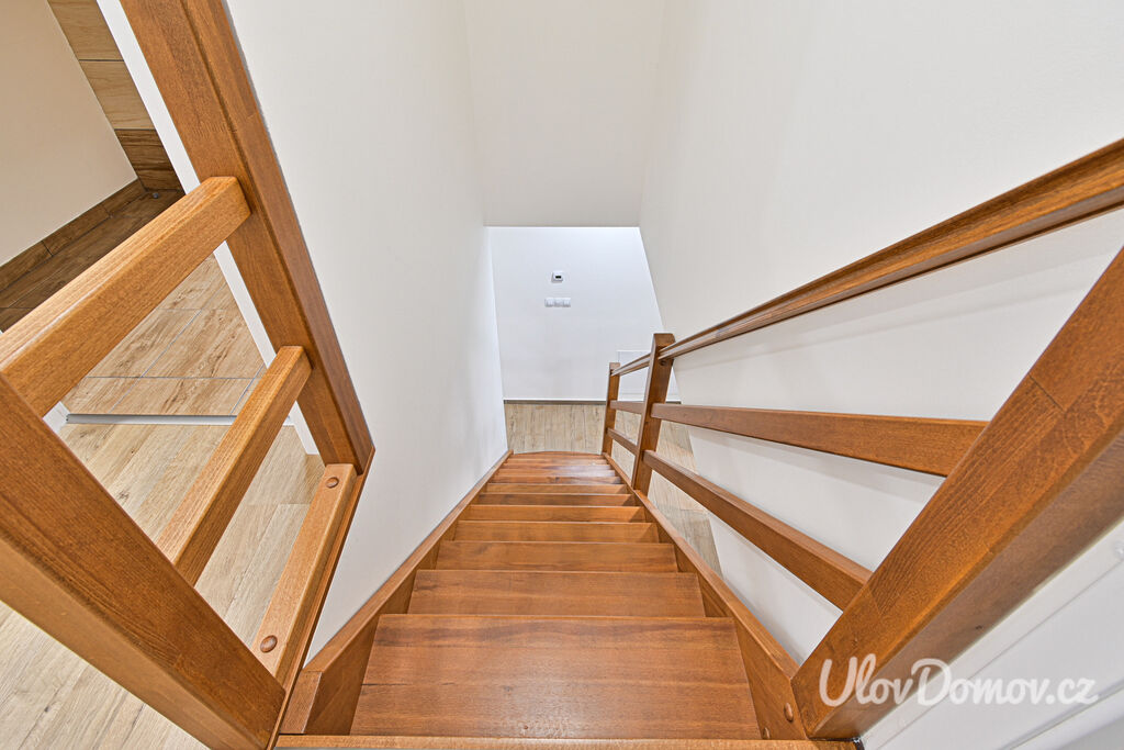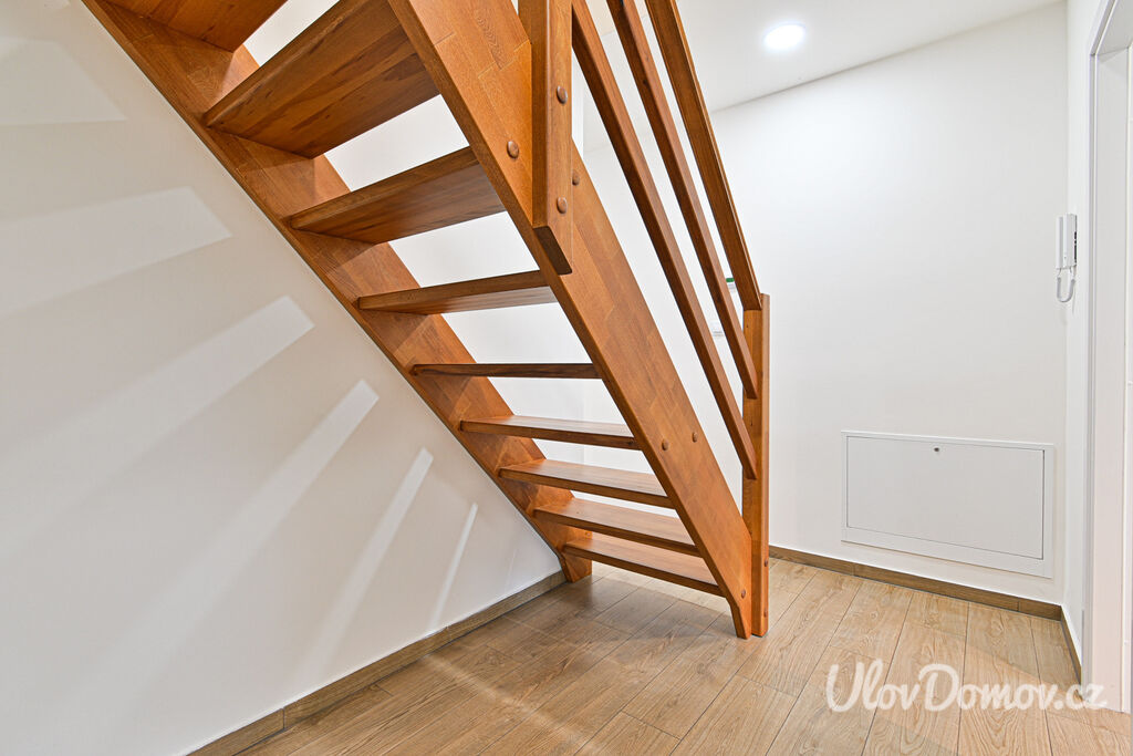 Ve výhradním zastoupení majitele nabízíme ke koupi polovinu dvojdomu o podlahové ploše 85 m2. Na katastru vedeno jako bytová jednotka, ke které náleží terasa se zahradou o výměře 115 m², pracovna, kolárna/sklad a úložný prostor v podkroví.