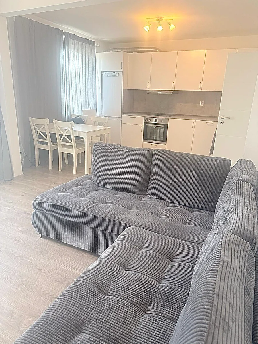 Byt je zařízený. Kuchyň je vybavená kuchyňskou linkou a elektrospotřebiči.