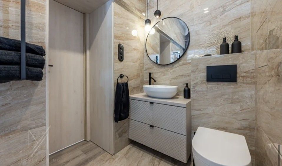 Byt se nachází ve 2. patře zatepleného bytového domu. Je k dispozici kompletně zařízený, včetně všech doplňků, stylového nábytku na míru a kvalitních spotřebičů značky Gorenje.