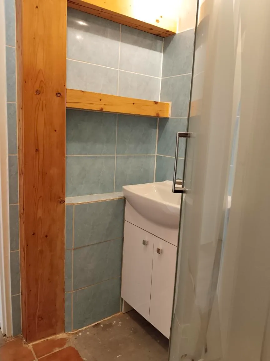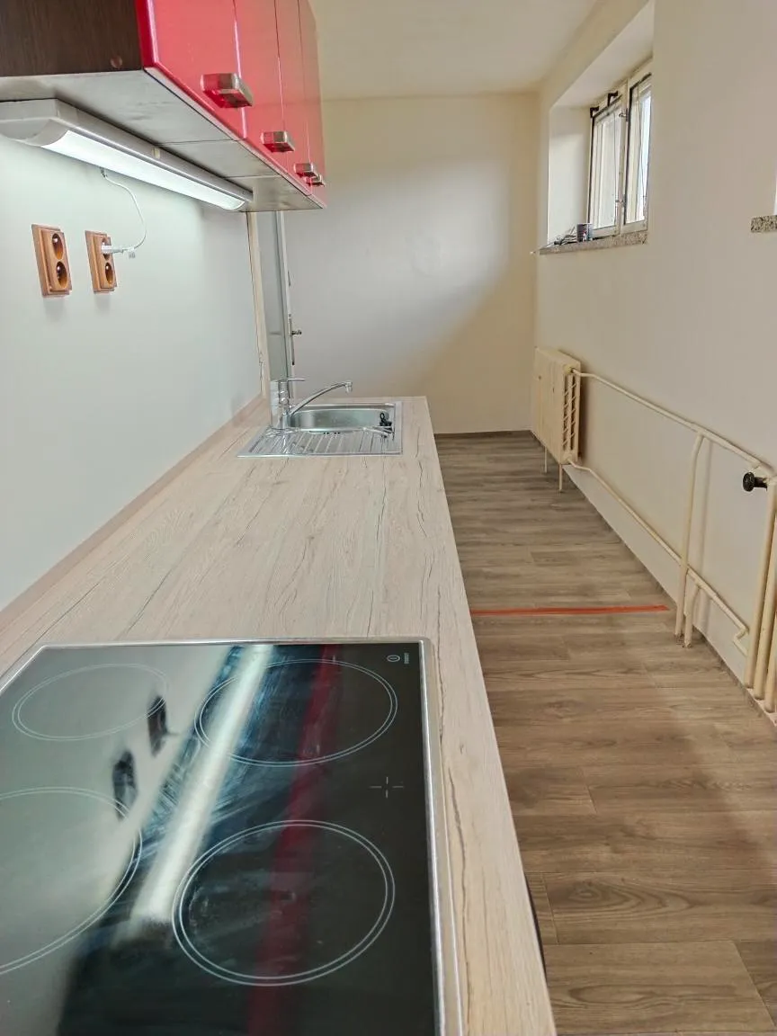 V bytě je nový sprchový kout , umyvadlová skříňka, kuchyňská linka se sporákem a myčkou, přípojka na pračku. Po celém bytě je nově položená podlaha z PVC, nové vchodové dveře, nové WC a k bytu náleží sklep o velikosti 8m².