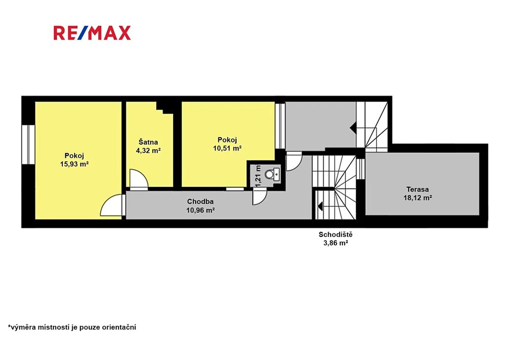 Půdní prostory (46 m2), kde mohou být další pokoje nebo jiné využití dle vlastních představ.