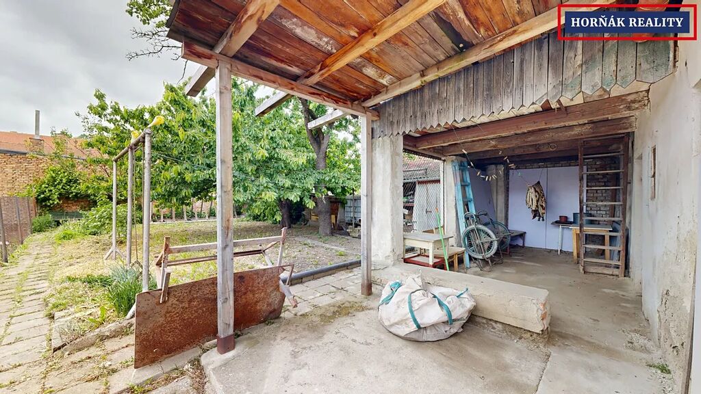 Ze zadní části domu je vstup na dvůr s pergolou, který navazuje na menší hospodářskou budovu. Za ní se nachází rovná a udržovaná zahrada – ideální pro relaxaci nebo domácí pěstování.
