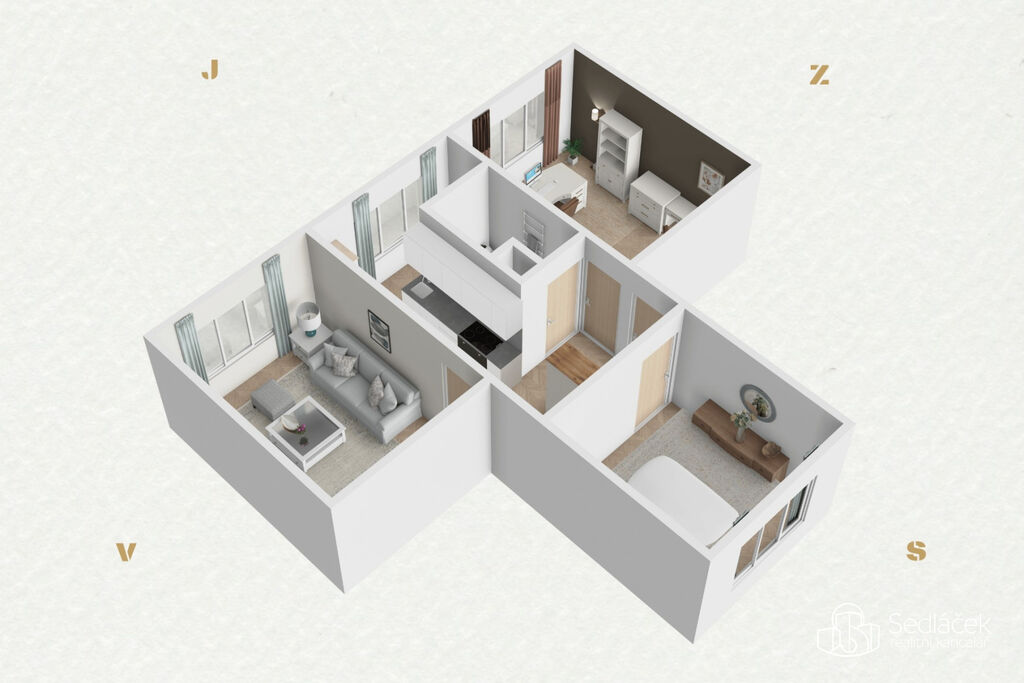 Byt je v původním stavu, ideální k rekonstrukci dle vlastních představ. Koupelna byla upravena a je nově propojena s WC. V obytných místnostech jsou zachovalé původní parkety z tvrdého dřeva, okna jsou plastová. Pokoje jsou samostatné, neprůchozí. K bytu náleží sklepní kóje v suterénu domu a možnost využívat společné prostory. Byt je vyklizený a ihned volný k nastěhování, nemá balkon.
