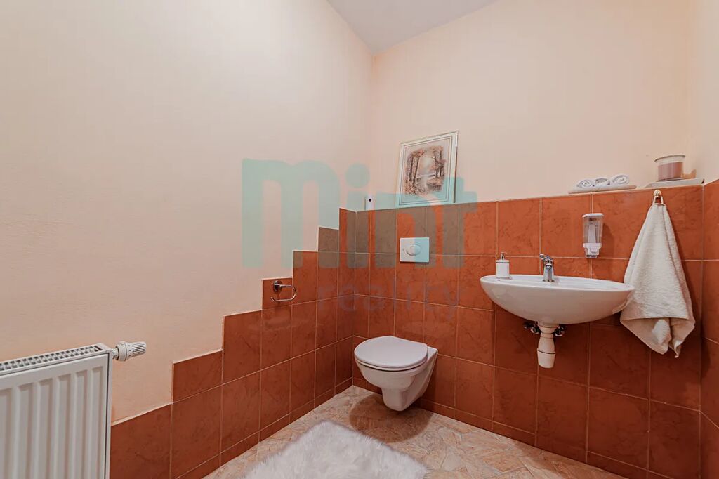 Přízemí domu je prakticky uspořádané a zahrnuje vstupní část/chodbu, obývací pokoj spojený s kuchyní, a samostatnou toaletu. Dále se zde nachází místnost o rozměrech 3x3 m, která díky připraveným rozvodům vody, elektřiny a odpadů na sprchu i vanu (včetně stropního podhledu) přímo vybízí k vybudování komfortní koupelny v přízemí domu. V případě potřeby však může sloužit také jako další plnohodnotný pokoj.