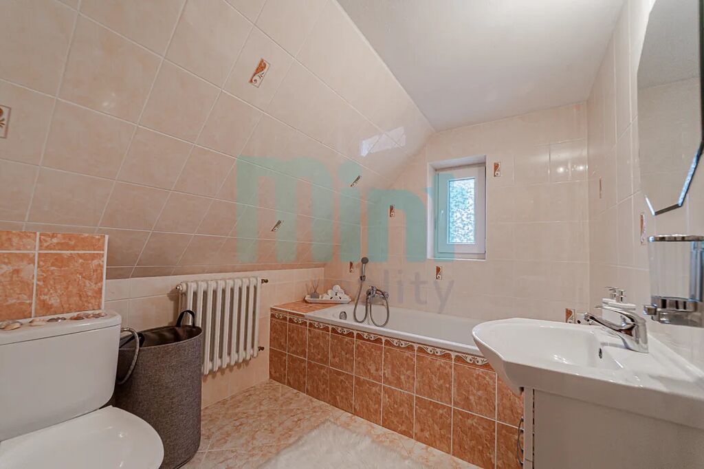 V prvním patře najdete tři samostatné pokoje a prostornou koupelnu s toaletou a vanou. Třetí pokoj disponuje balkonem, ze kterého se otevírá krásný výhled na jihovýchod, jih a jihozápad. Přízemí a první patro jsou propojené otevřeným schodištěm