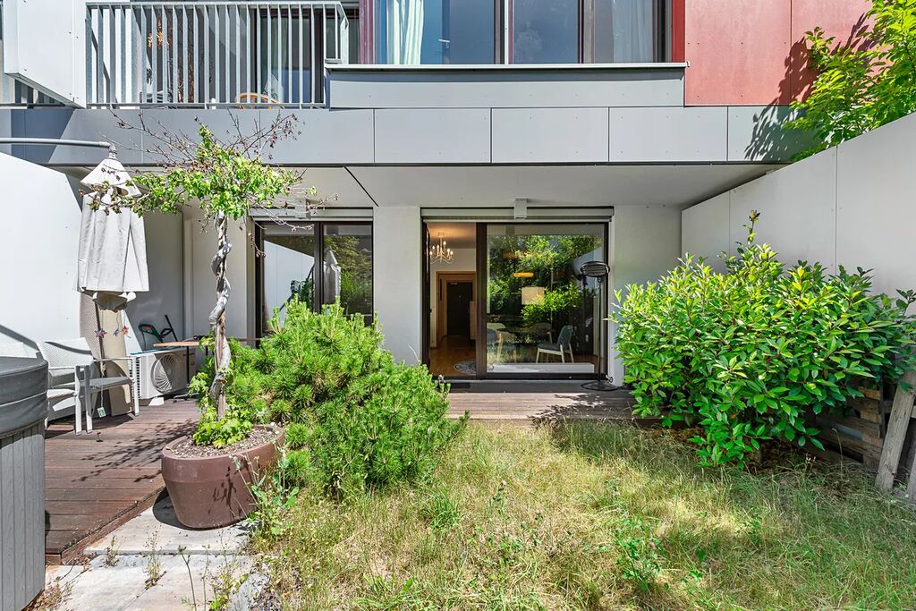 V přízemí bytu se nachází prostorný obývací pokoj s úplně novým kuchyňským koutem vybaveným kvalitními spotřebiči. Z obývací části je přímý vstup na předzahrádku s klidným posezením, kde najdete gril a vířivku – ideální místo pro relaxaci. V přízemí je také nová klimatizace, která zajišťuje příjemné prostředí i v horkých dnech.