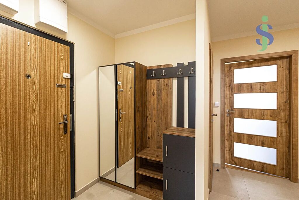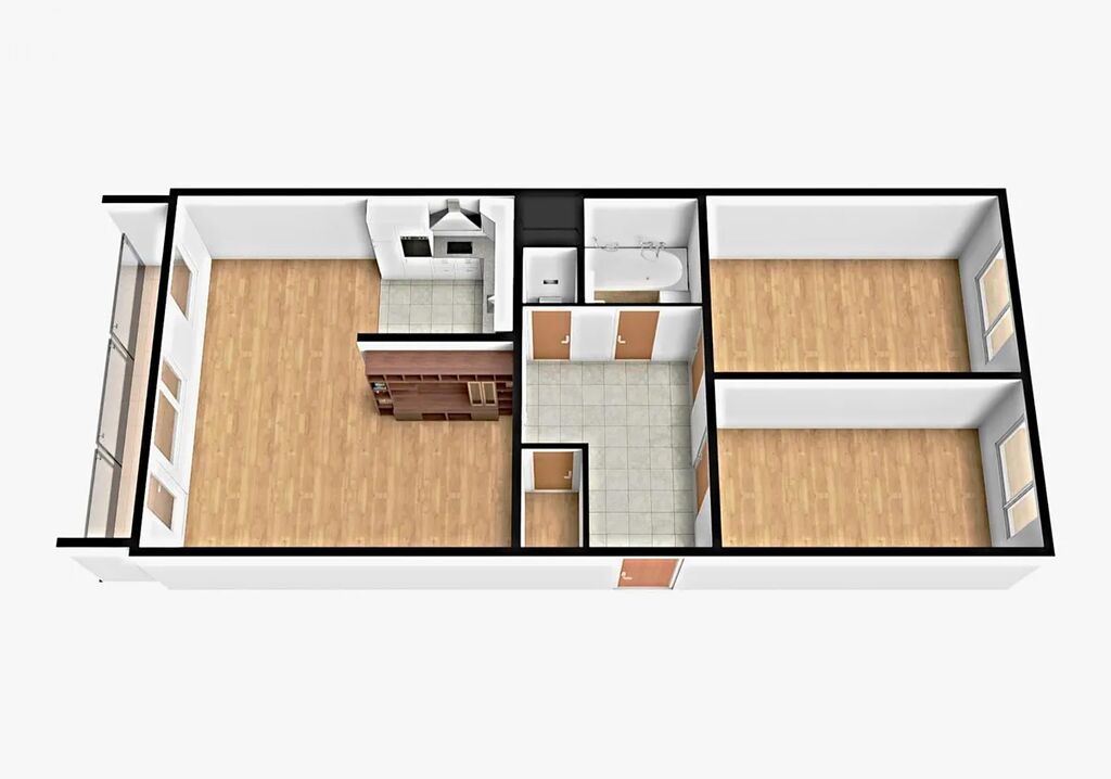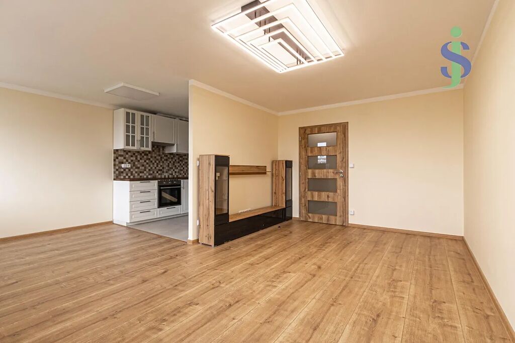 Byt má dvě ložnice, prostorný obývací pokoj s kuchyňským koutem a výstup na lodžii.