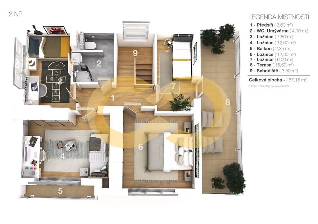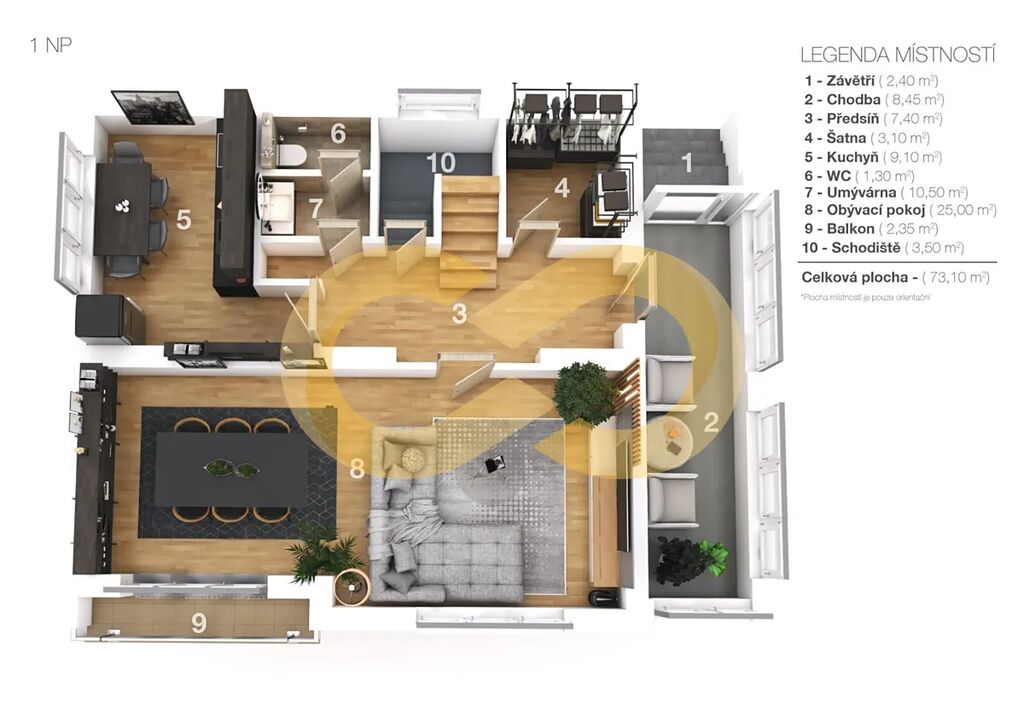 Obývací pokoj vám dá prostor pro rodinná setkání i chvíle soukromí. Má přímý vstup na balkon a když budete chtít, může tu vzniknout i terasa s výhledem, který vám zlepší každý den.