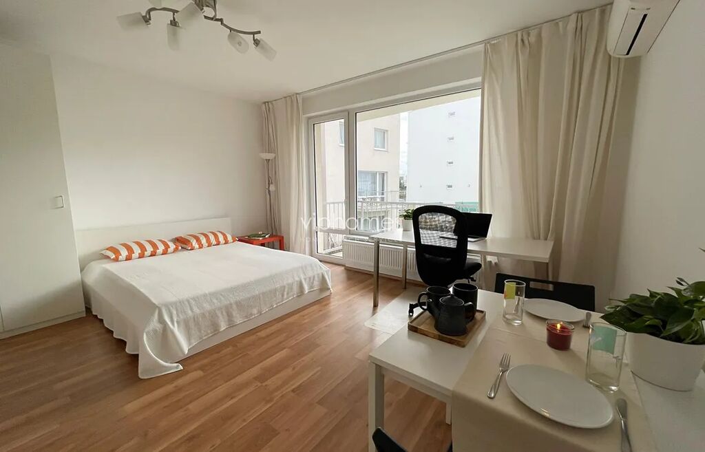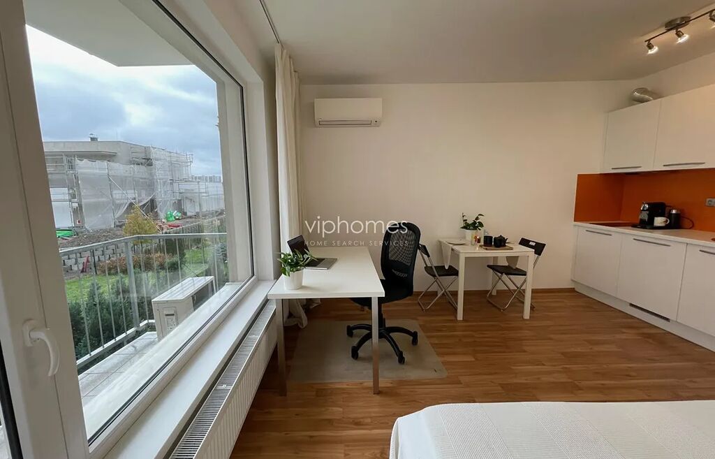 Prodej velmi pěkného bytu o dispozici 1+kk s balkonem, výtah. Výměra bytu-užitná plocha 29,8 m2- obývací pokoj 20,19 m2, balkon 4,68 m2, celkem 34,44 m2, umístěný ve 2.NP novostavby v lokalitě Praha 9-Černý Most.