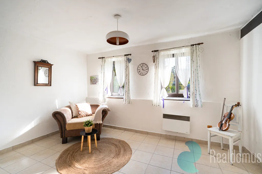 Dům je v přední části roubený, v ostatních částech je postaven z tradičních materiálů 1. pol. 20. století. Celkové pojetí je tak blízké tradičním domům stavěným v Čechách v dřívějších dobách a je v místě unikátní. Okna a vstupní dveře jsou plastová. Interiér domu je kombinací tradičních prvků jako např. nádherných kachlových kamen v obývací části nebo tradičních kamen v kuchyni a moderních prvků -rekonstruovaná koupelna, obložení dřevem. Nemovitost je určena k celoročnímu bydlení - je vedena jako rodinný dům.
