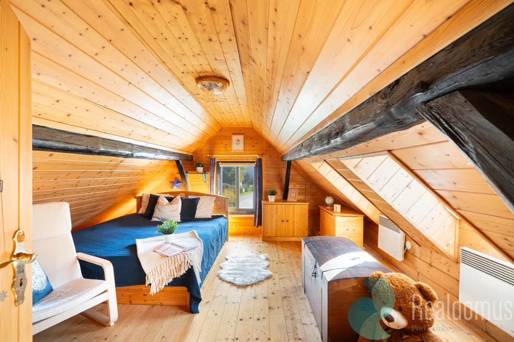 Dům je v přední části roubený. Celkové pojetí je blízké tradičním domům stavěným v Čechách v dřívějších dobách a je v místě unikátní. Okna a vstupní dveře jsou nové. Interiér domu je kombinací tradičních prvků jako např. nádherných kachlových kamen v obývací části nebo tradičních kamen v kuchyni a moderních prvků - rekonstruovaná koupelna, obložení dřevem. Nemovitost je určena k celoročnímu bydlení - je vedena jako rodinný dům.
