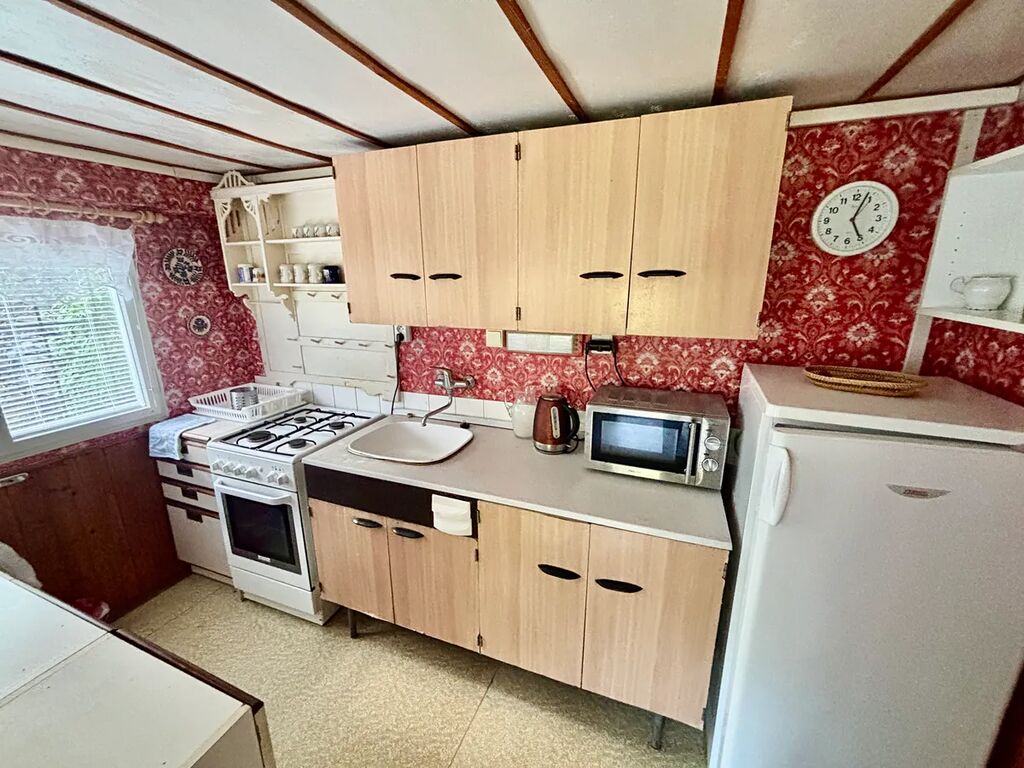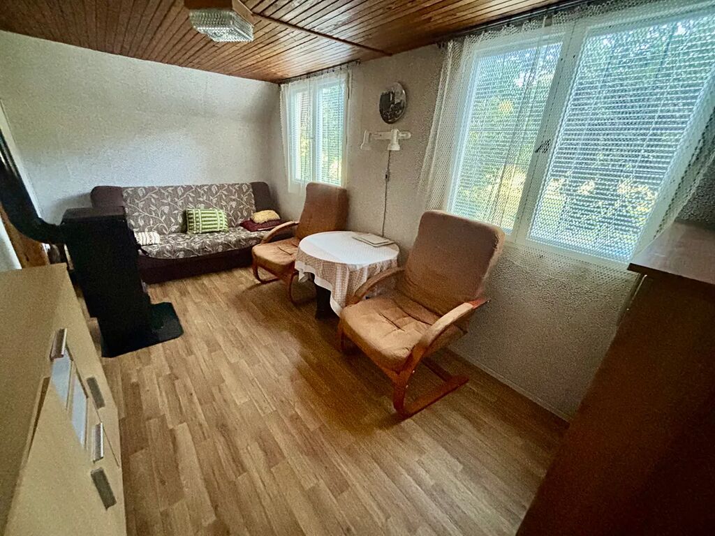 Chata je dřevěná v přízemí s kuchyní, jídelnou, obývacím pokojem.