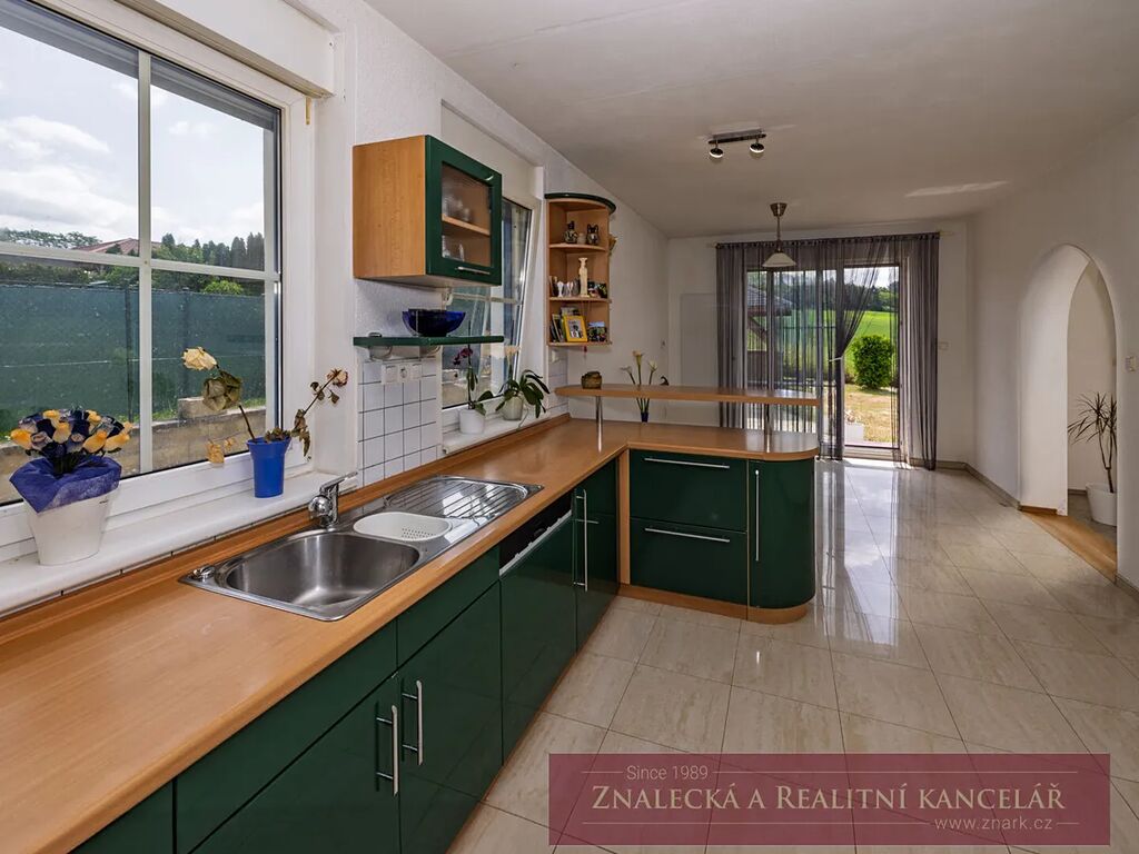 Nemovitost dispozičně nabízí pět samostatných pokojů, prostornou kuchyni s jídelním koutem, dvě koupelny a dvě toalety, což zajišťuje pohodlí i pro větší rodinu. K dispozici je také prostorná dvojgaráž, která pohodlně pojme dvě auta a zároveň nabízí dostatek úložného prostoru.