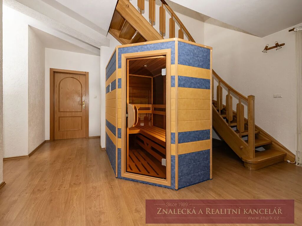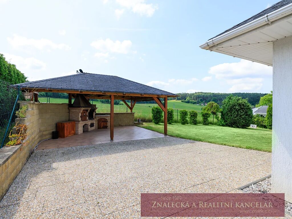 Velkým bonusem je venkovní kryté posezení s krbem, u kterého je připravený prostor pro vířivku s výhledem na lesy – ideální místo pro relaxaci a odpočinek. Součástí pozemku je také praktický zahradní domek, který poslouží například pro uskladnění nářadí, kol nebo jako zázemí pro zahradu.
